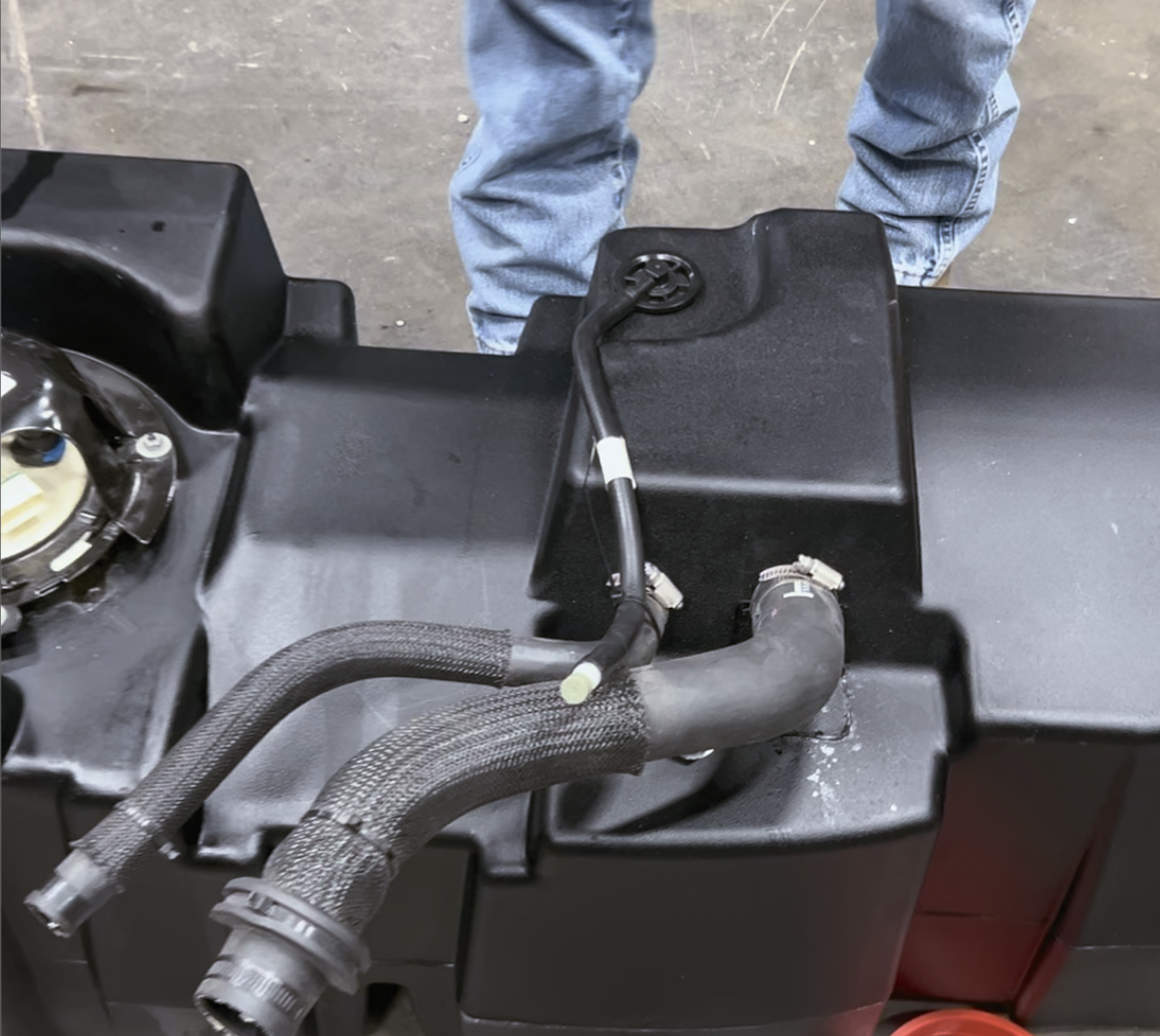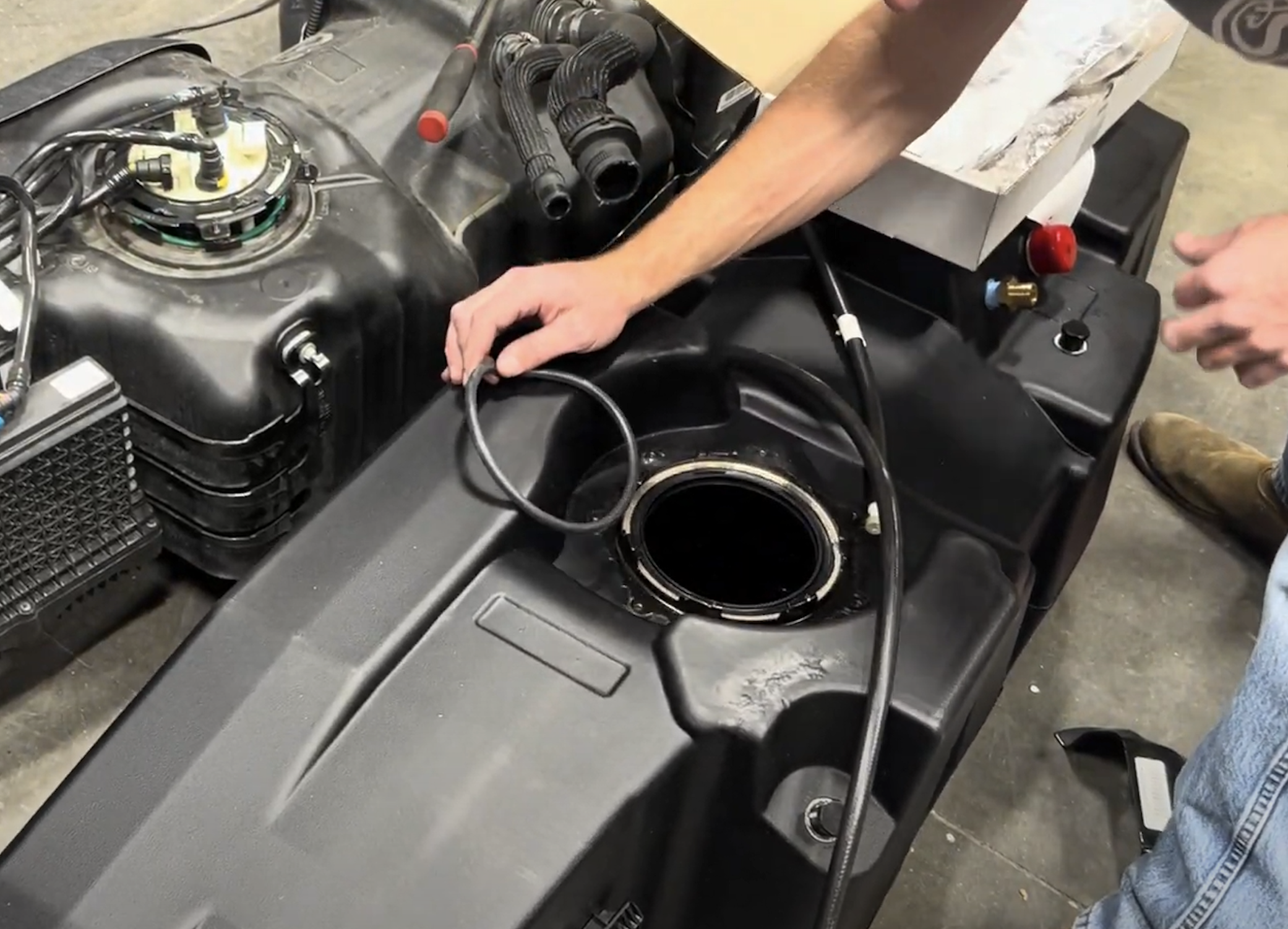 Transfer the OEM sending unit, water separator and fuel lines from the OEM tank to S&B Tank