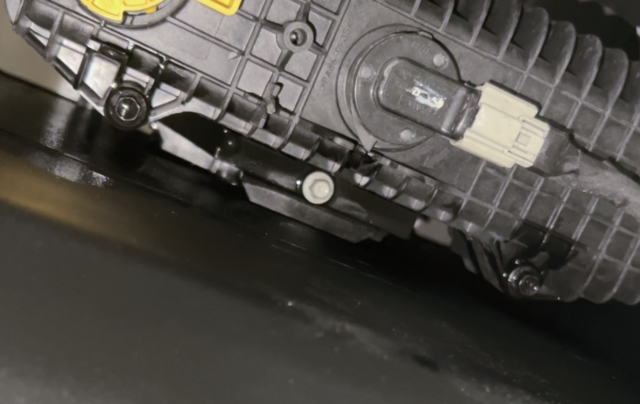 Remove the two fuel lines positioned in front of the fuel tank. For the red connector or white connector, slide the safety out and pull the connector apart.. For the yellow connector, pull the locking tab out(at the base of the connector) and depress the upper tab to remove the connector. Please see our install video if you need help