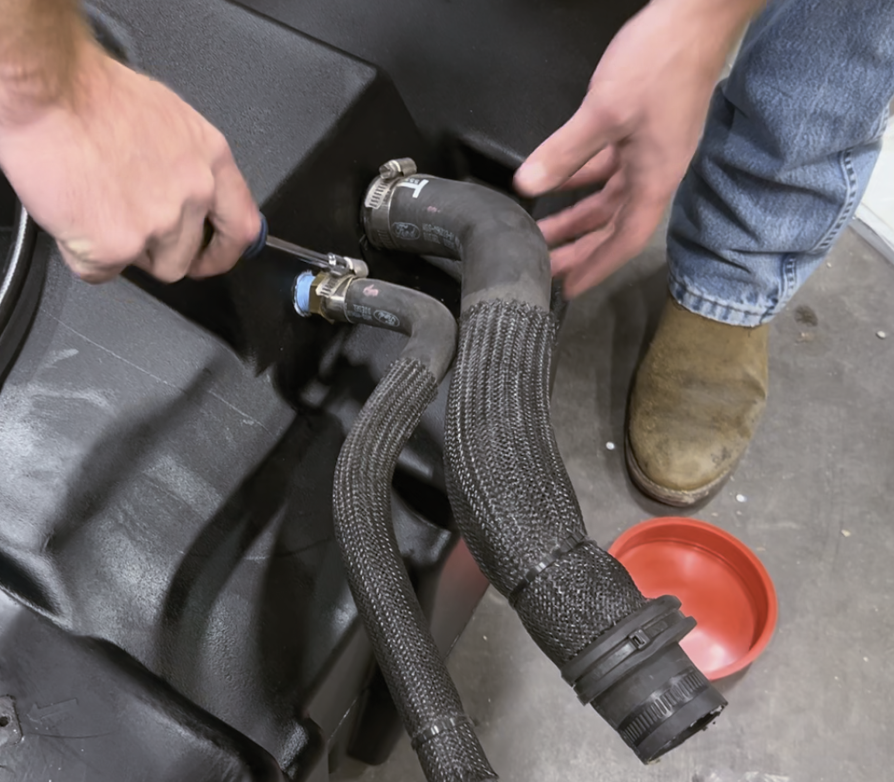 2023+ trucks, reconnect the DPF injector line.