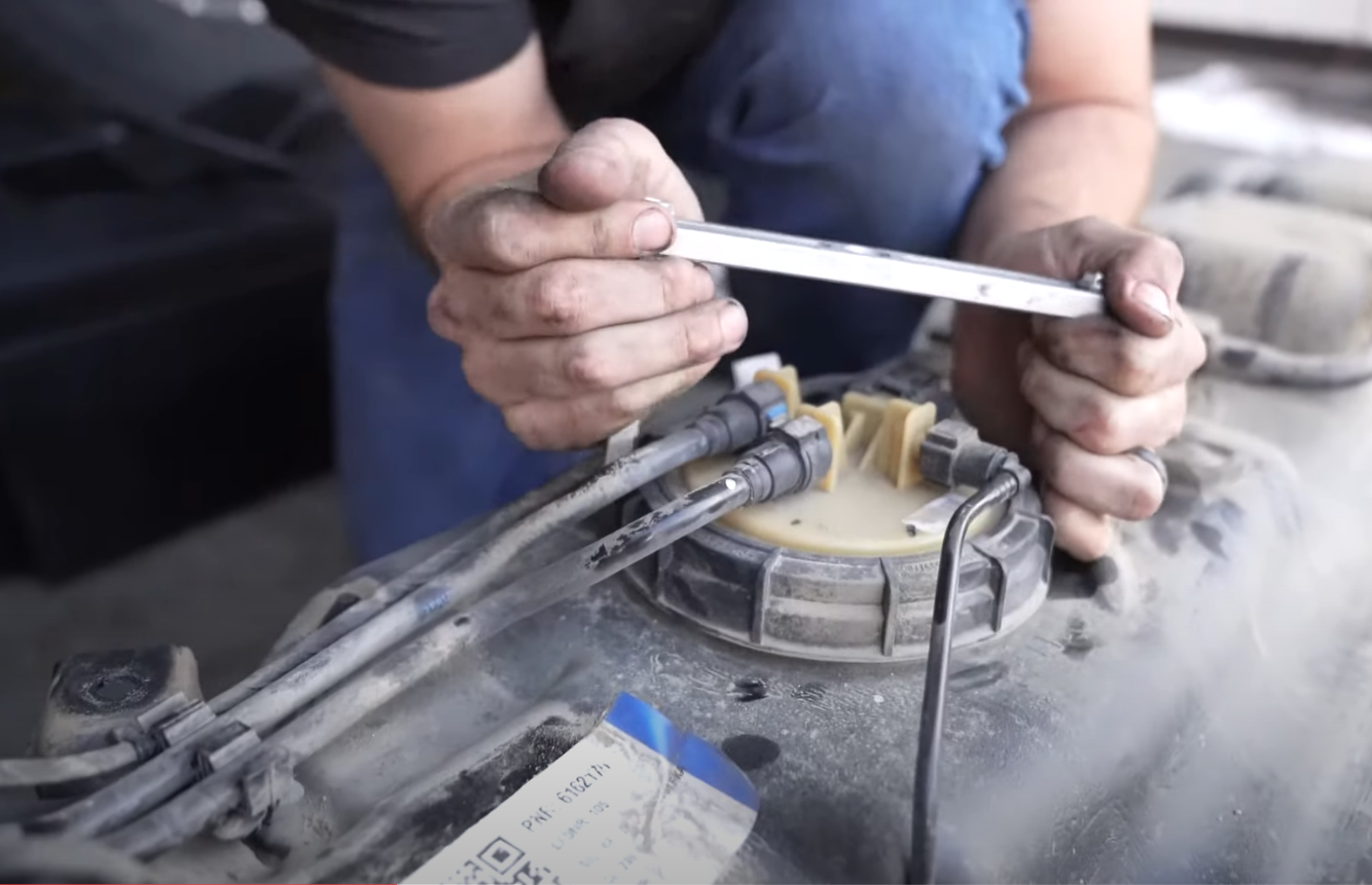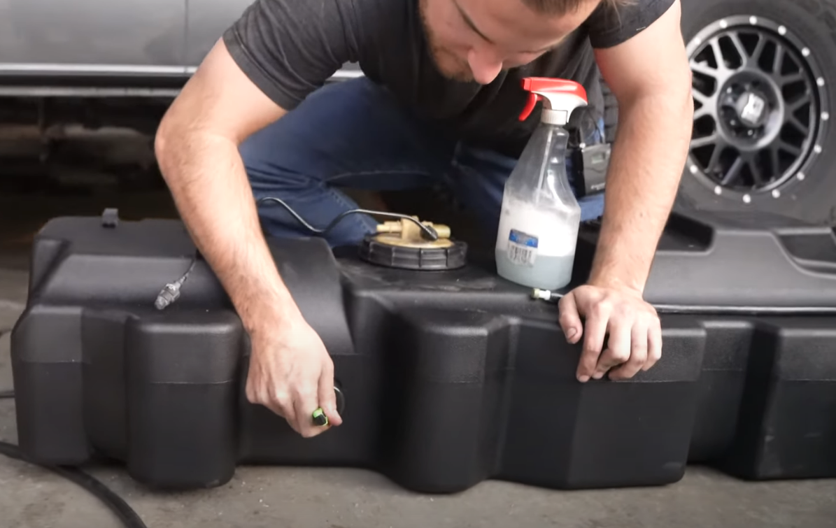 Please check to make sure your van has the lateral crossmember behind the original tank. If you don't have this crossmember, the tank will not work. The image in the step below shows what it would look like if you van didn't have the crossmember