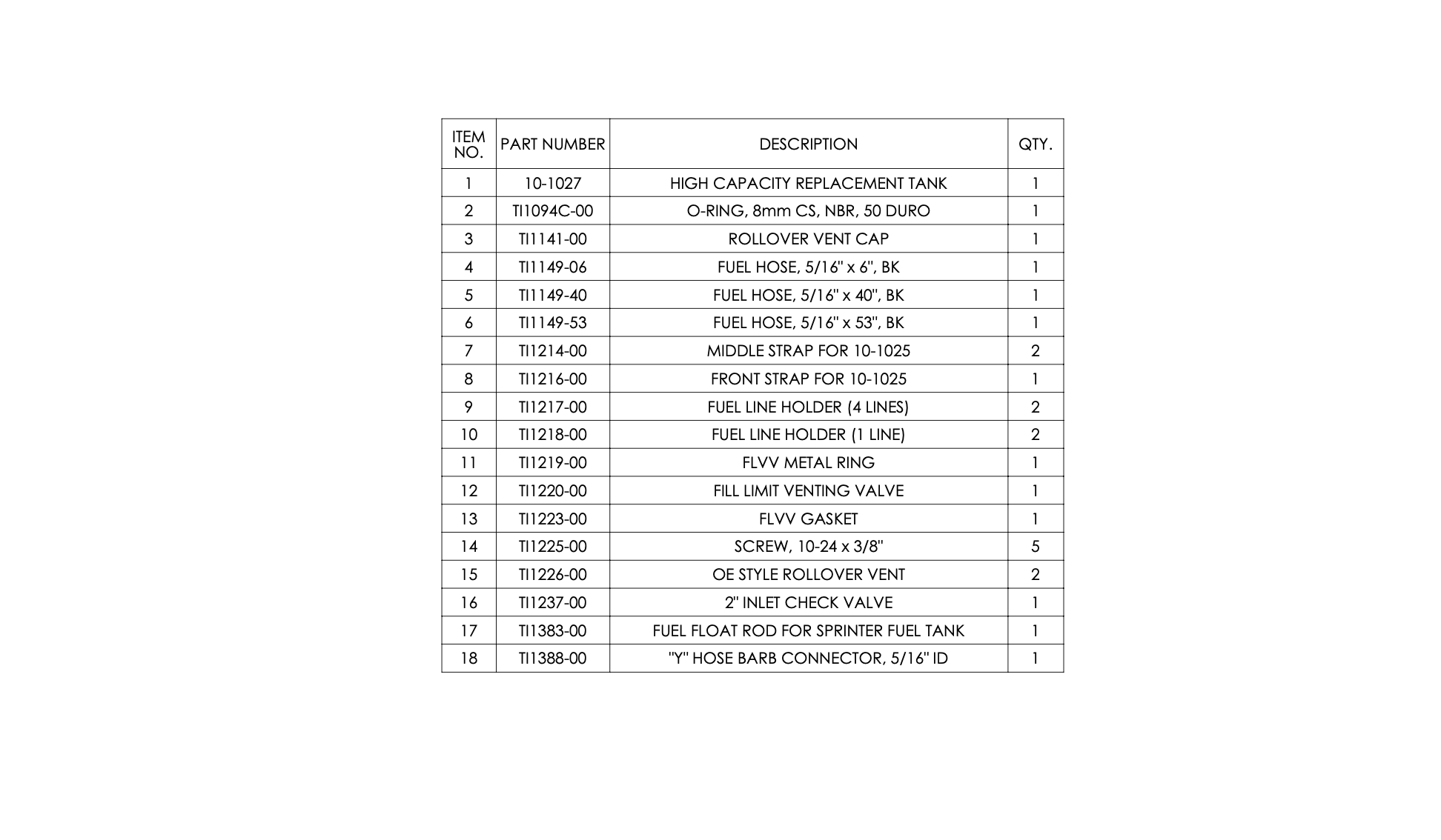 Auxiliary Fuel Tanks will void the Lifetime Warranty. DIESEL FUEL ONLY