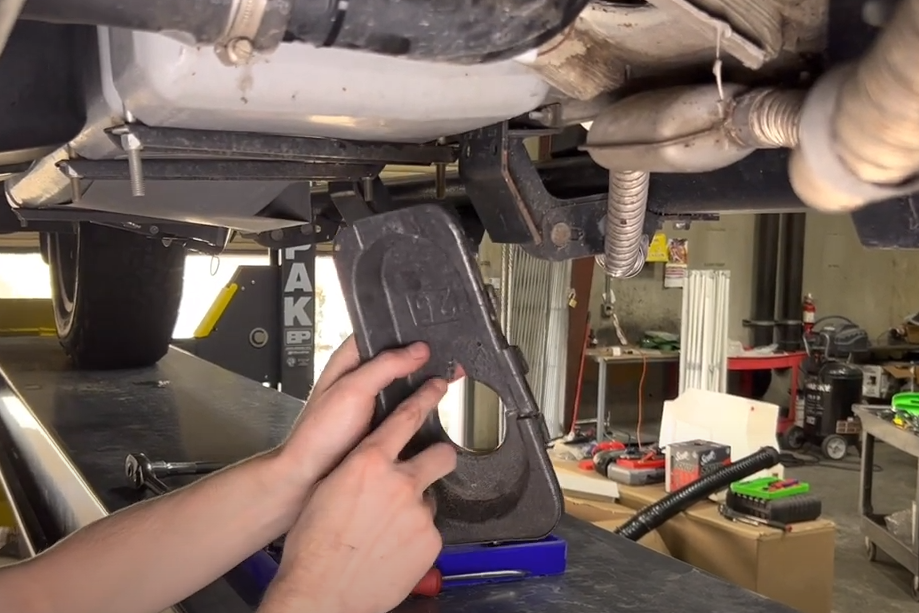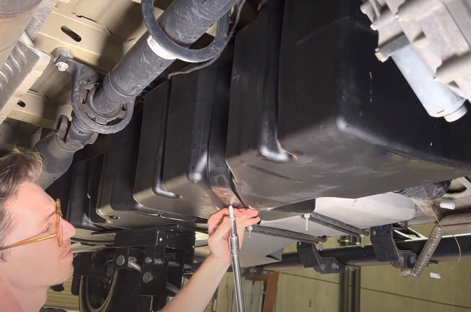 Position jack under fuel tank to support tank. It is now time to drop the tank (someone to assist you will make this part easier). If you are doing the install on the ground, support the underside of the tank with a floor jack or straps.