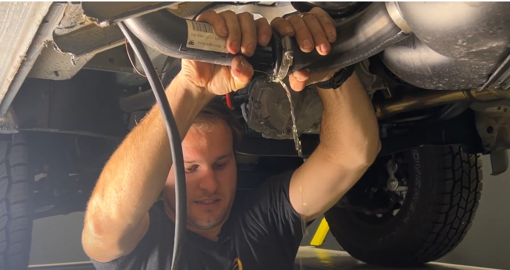 Inspect the underside of the Vehicle for any obstructions. The S&B Tank extends further forward and further back, please make sure there is not anything mounted that will interfere with the tank