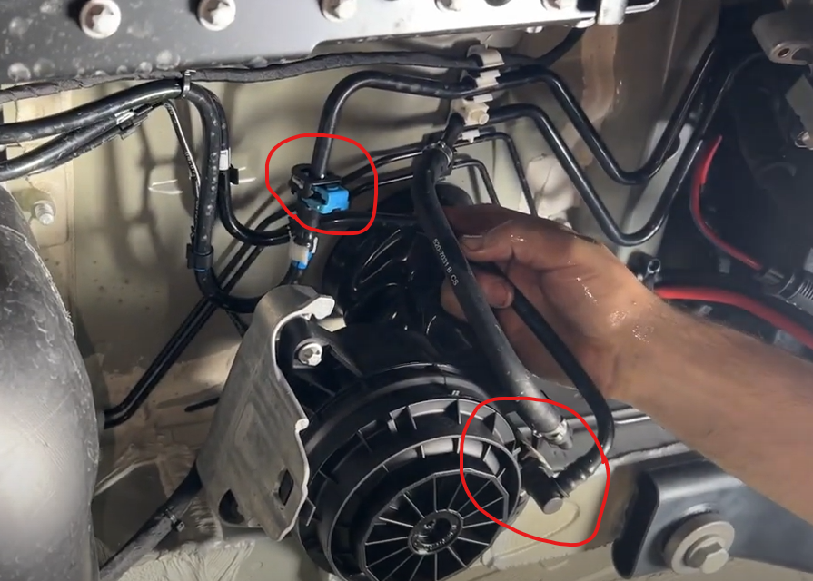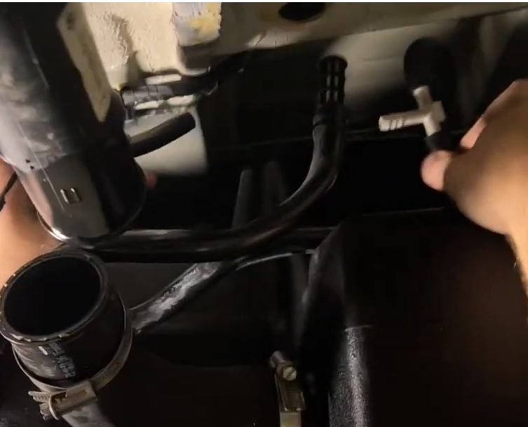 Slide the safety lock out on the blue and white connectors and disconnect the fuel lines. If you need help disconnecting these, please see 5:30 of the install video below. If you van have a aux fuel tap connected to a heater, please remove this connection as well.
