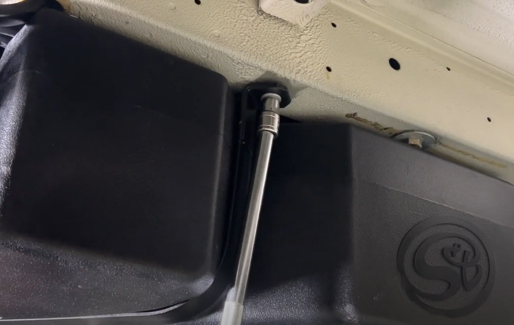 Starting with the rear strap, install all 4 S&B Tank straps. The rear strap will use the included gold bolts and the other 3 straps will use the OEM bolts.