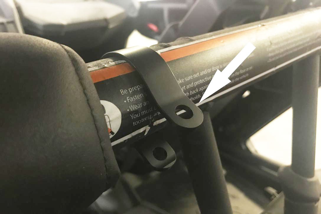 Slide the bar mount straps over roll cage. Wrapping a small parts bag around the roll cage will make sliding the strap over the roll cage easier and help protect the roll cage from scratches.