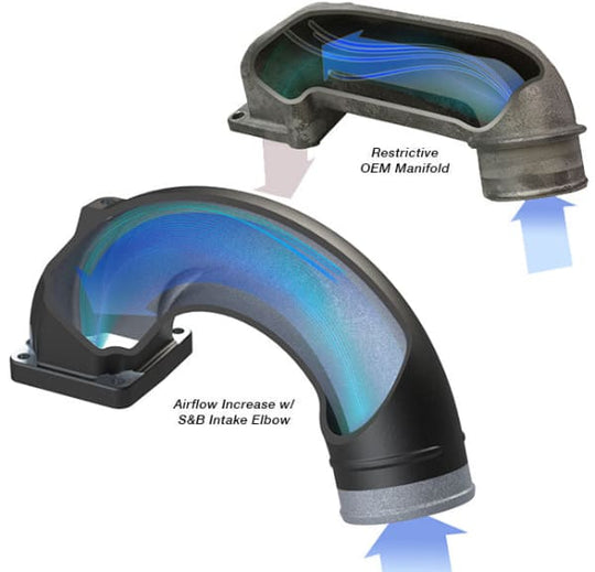S&B Intake Elbows are CNC Machined from a 6061 – T6 Aluminum and replace your restrictive stock turbo inlet manifold. Our intake elbows maximize airflow, improve turbo spool, and lower EGT’s. Every intake elbow comes complete with all hardware and gaskets needed for a quick, hassle-free installation.