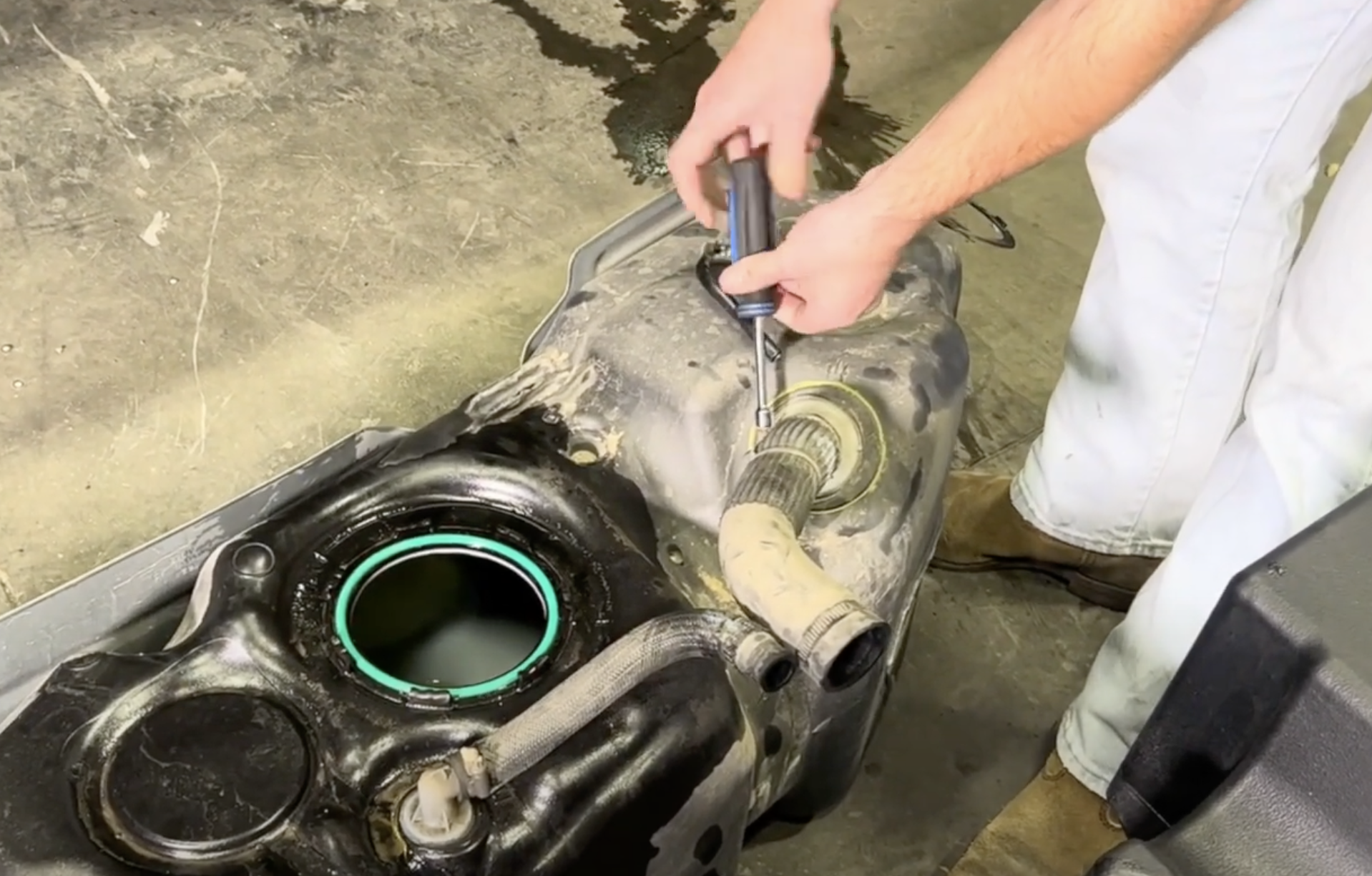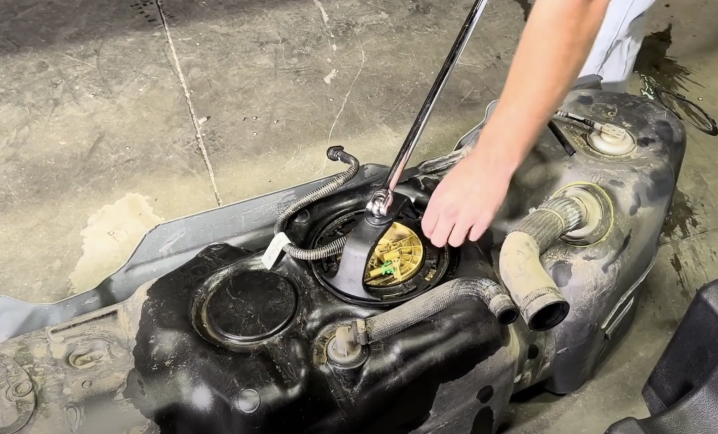 Drop the tank fully out of the vehicle and begin getting the locking ring removed.