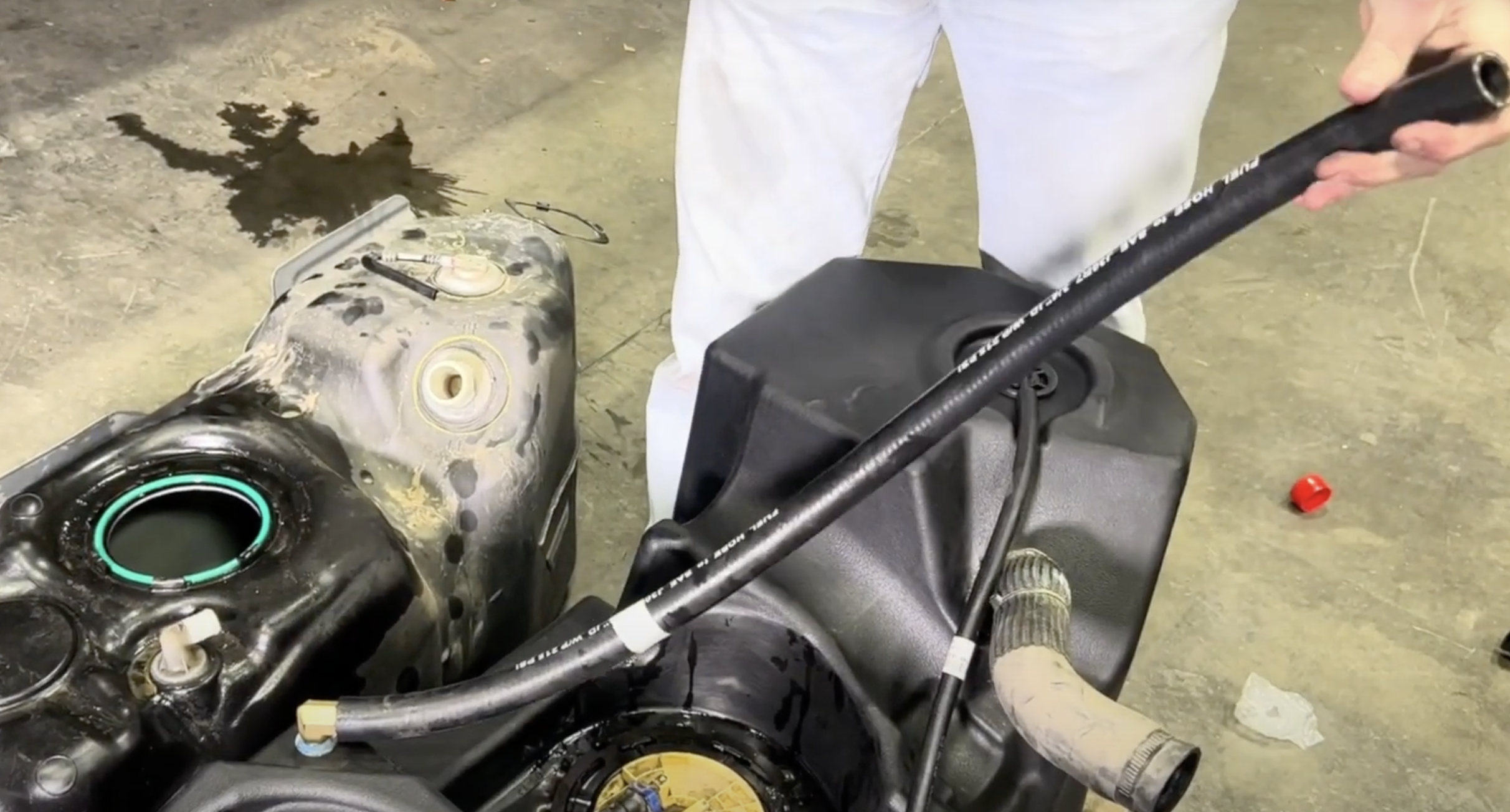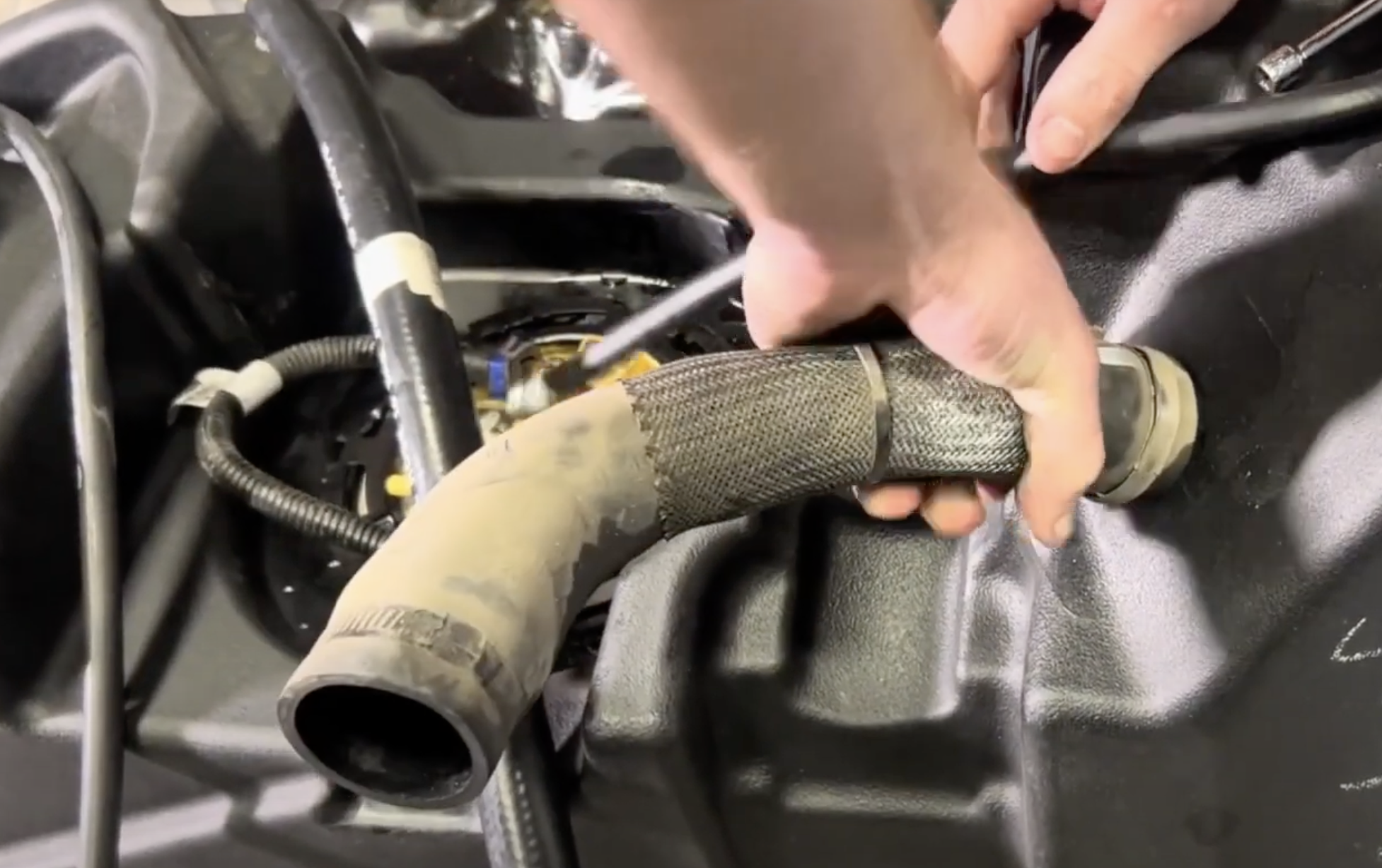 Push the new fill line and hose clamp onto the filler neck vent. Tighten down once it is fully on the filler neck vent.