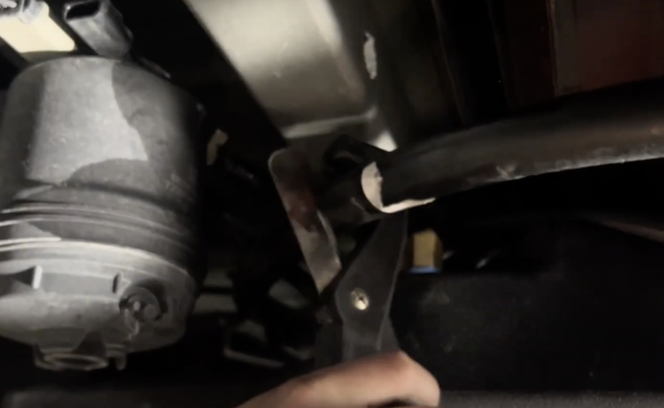 Once its cut, slide the hose clamp onto the line then reconnect it to the barb on the S&B tank.