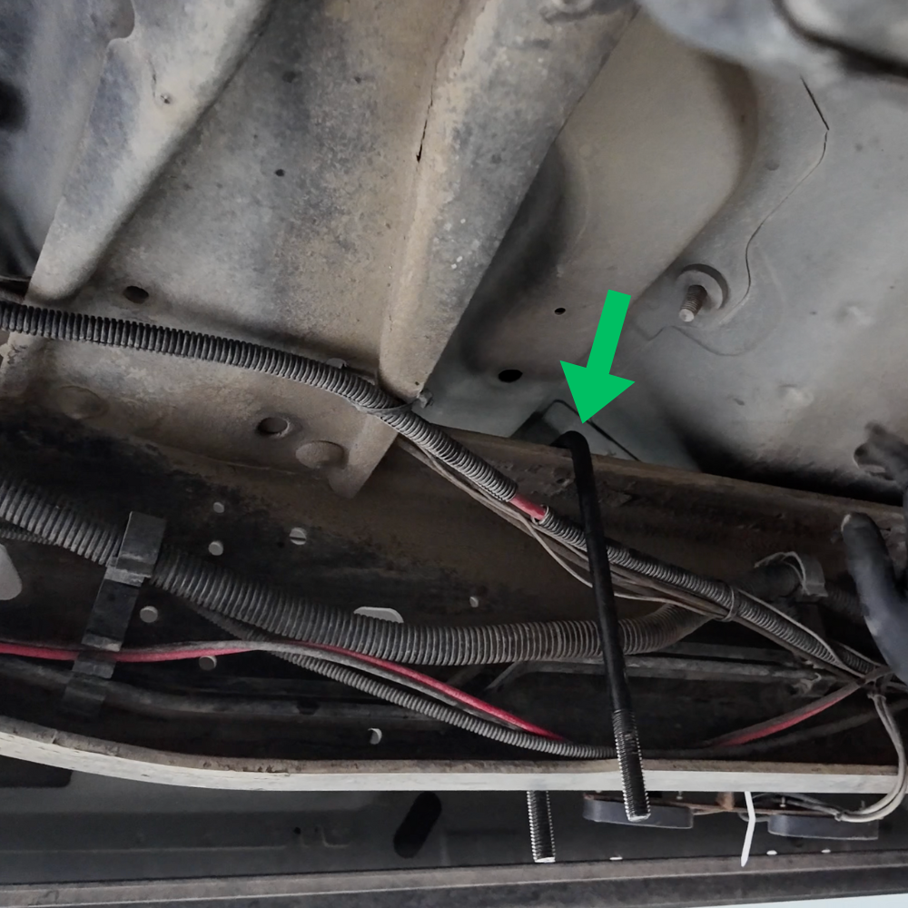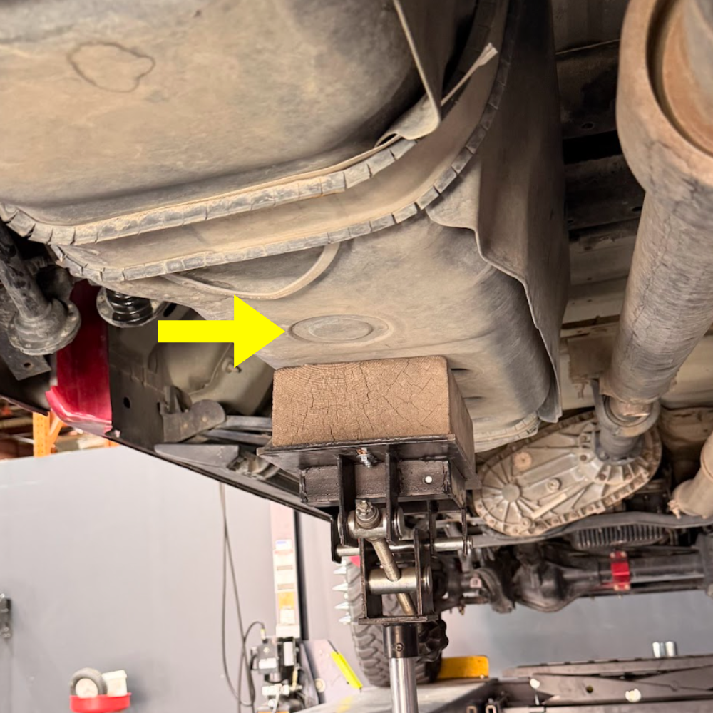 *Ensure that you don't place the jack below the sending unit (yellow arrow) as this will break the sending unit within the fuel tank.