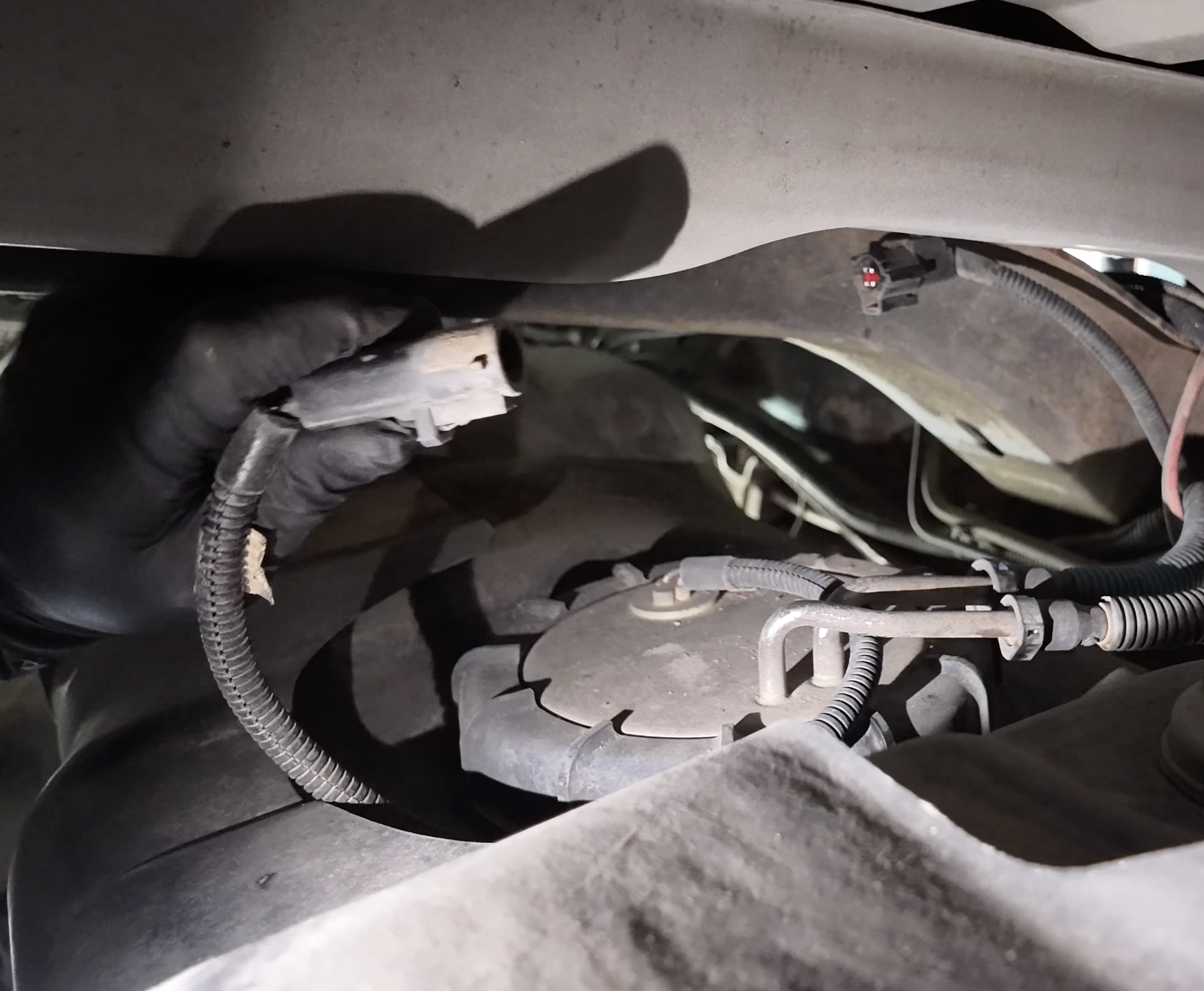 Once all 3 connection points are disconnected, go ahead and drop the fuel tank entirely.