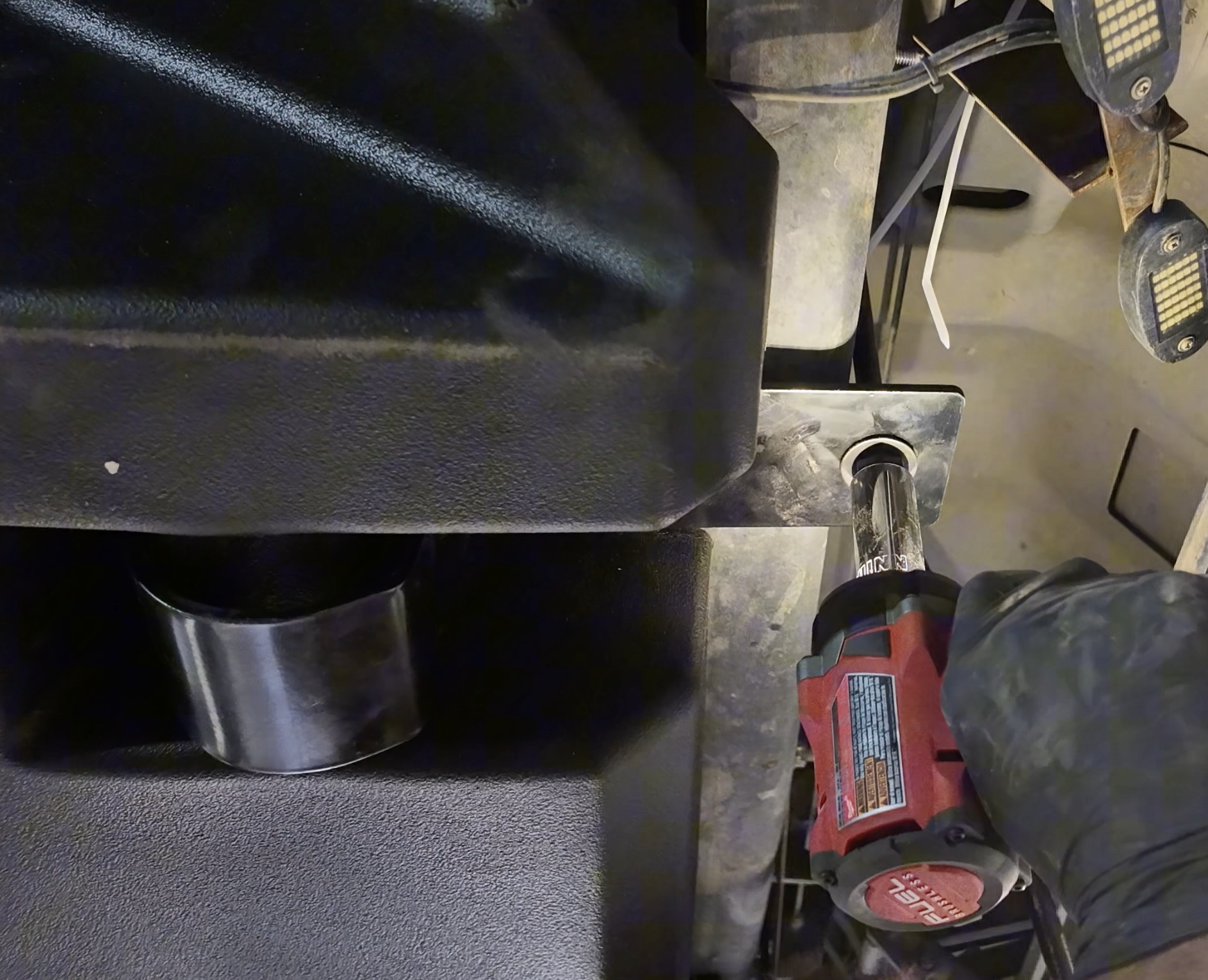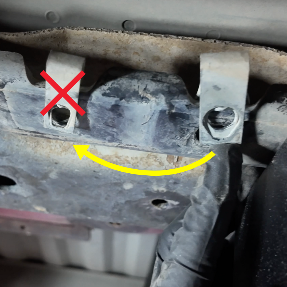 Discard the slipnut on the left. *This was for the OEM Fuel tank Skid Plate.