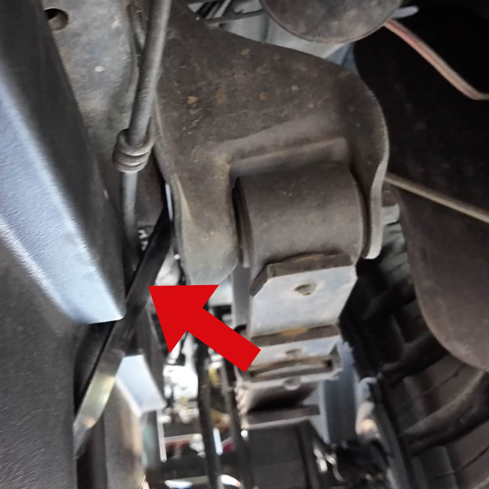 Place the provided U-bolt on the transfer case side of the forward most cross member, on the driver side frame rail (refer to the step prior to "Step 1").