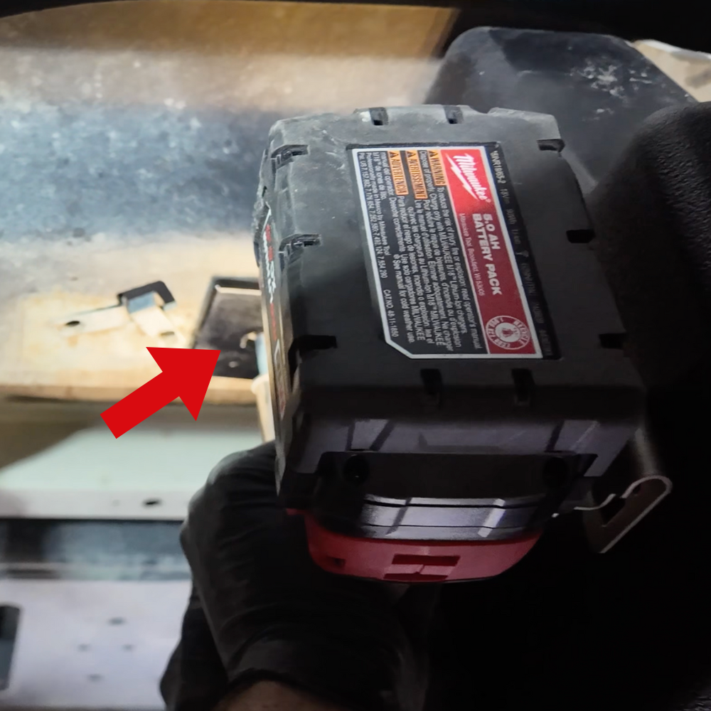 Reconnect the fuel filler tube (red arrow) and tighten down the hose clamp using an 8mm socket.