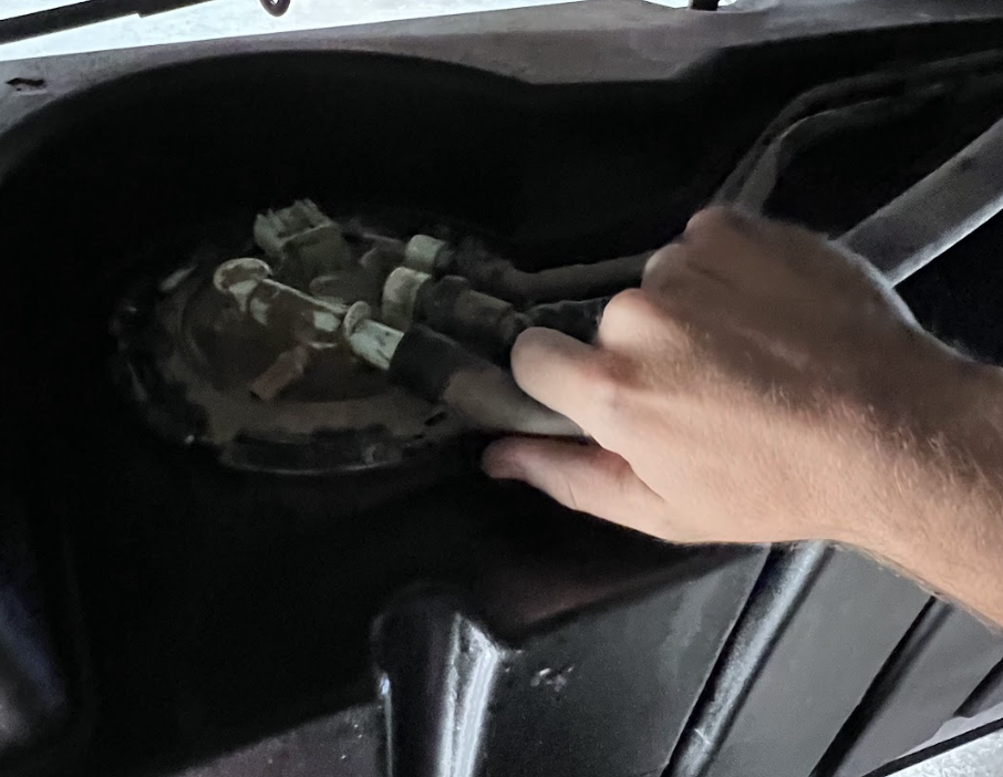 Now, go ahead and connect the fuel vent hose and the electrical power unit back to the fuel sending unit.