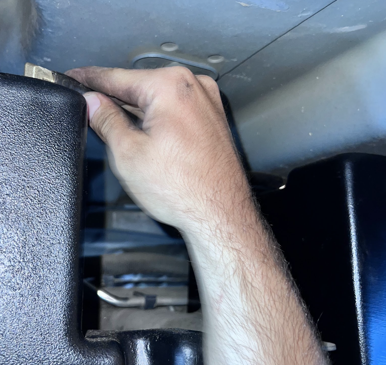 Remove your OEM fuel tank skid plate if your vehicle still has one.