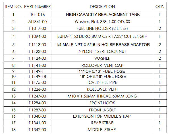 Auxiliary Fuel Tanks will void the Lifetime Warranty.