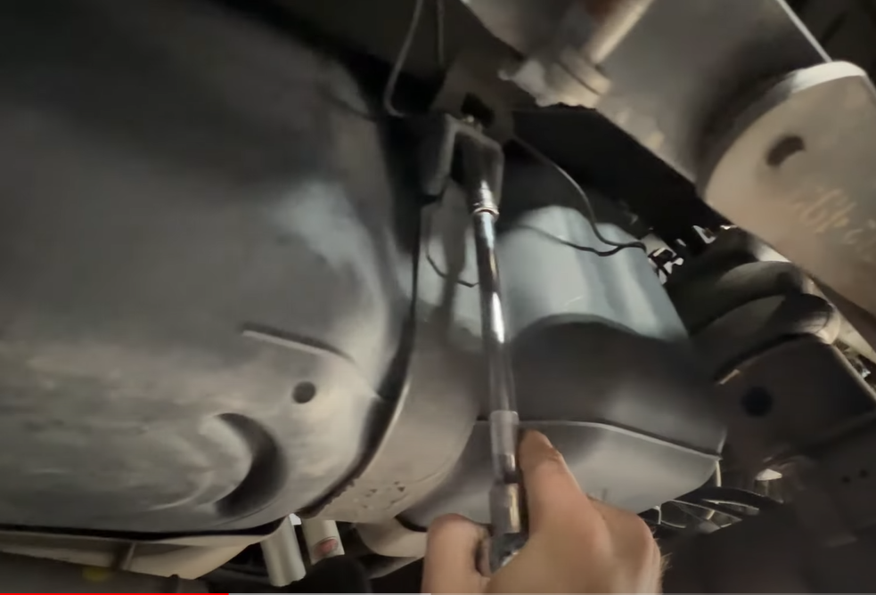 Install the middle and rear S&B fuel tank straps. Make sure you take the supplied S&B bolt and apply blue lock-tight to the body of the bolt. - 15mm socket and extension