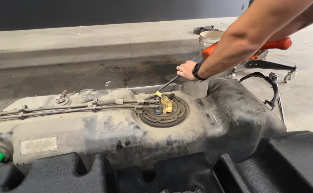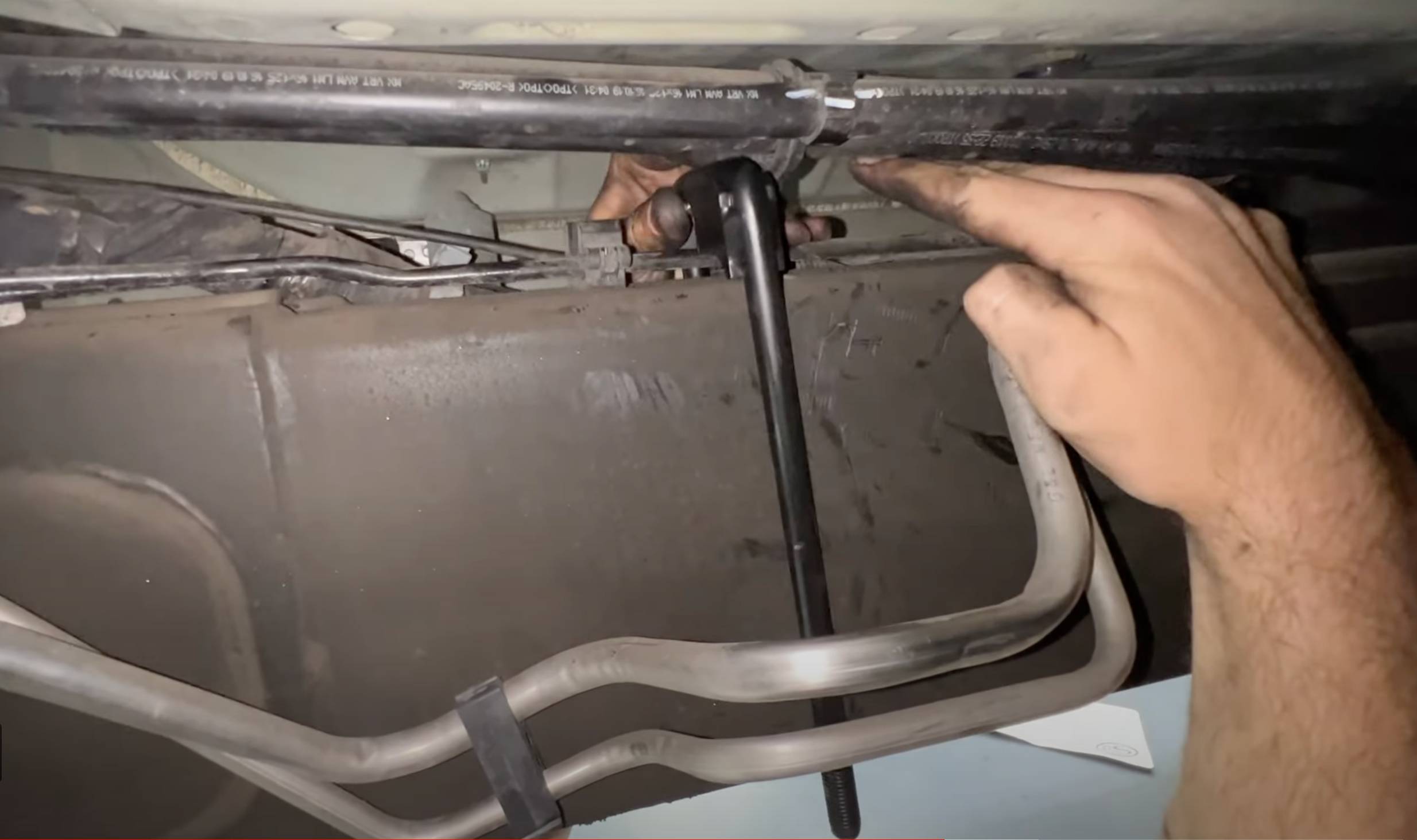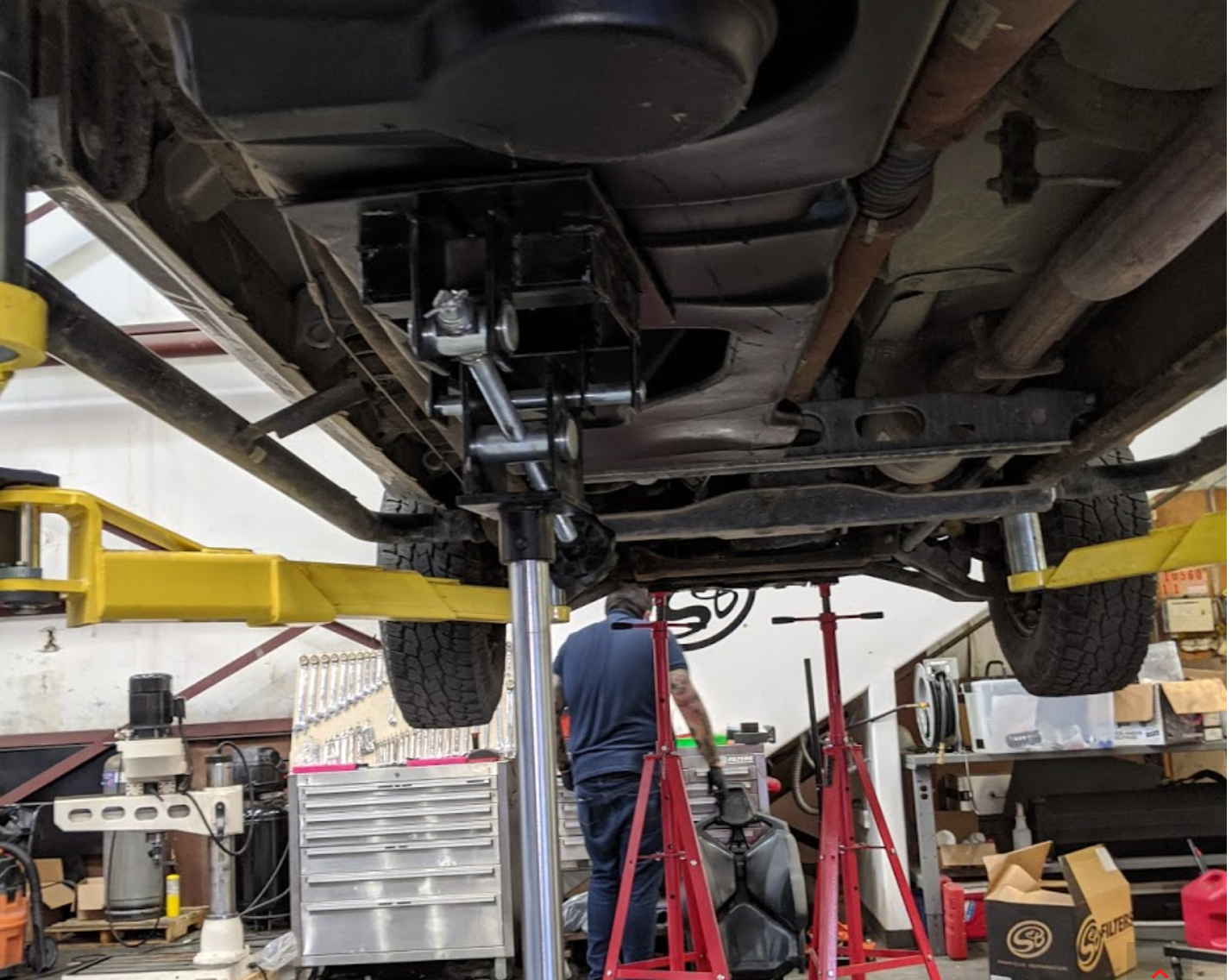 Center the hydraulic jack underneath the fuel tank and raise it into position. Lift Install: Hydraulic Jack Floor Install: Floor jack with added support to properly hold tank