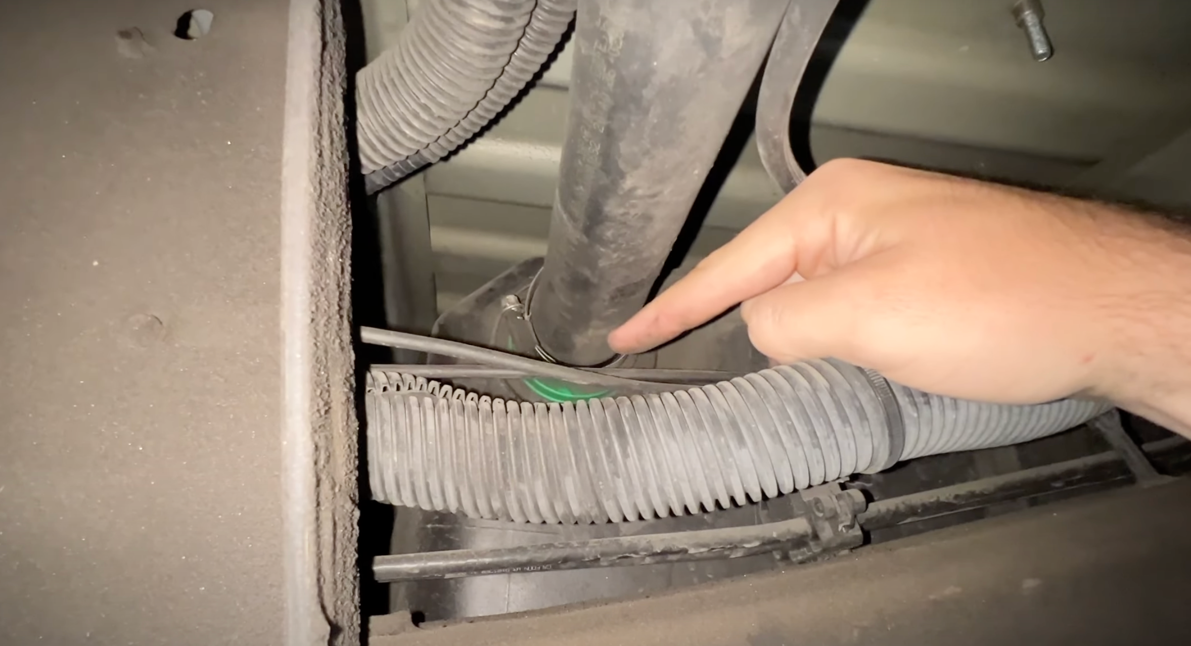 Remove the hose clamp and hose from the main vent line attached to the fuel sending unit. You can reach over the driveline to access this.