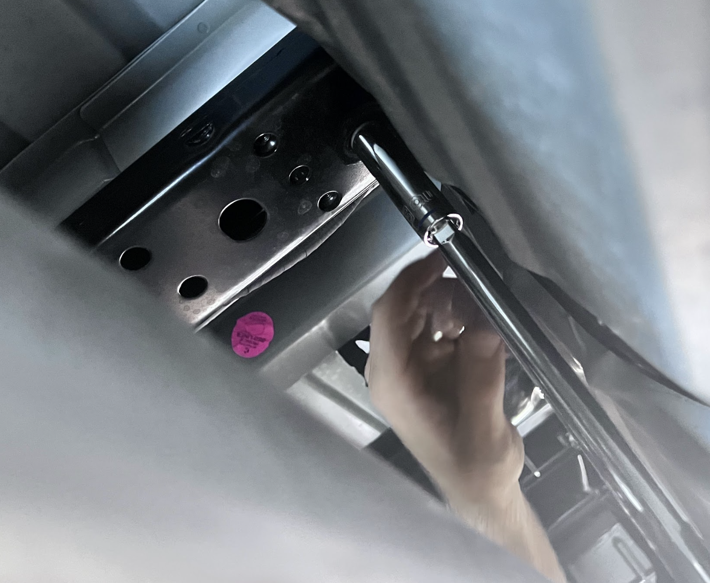 Now it's time to mount the two S&B Mounting Straps. Start by mounting up the cradle side first, then bring the other side up to get it halfway bolted in. Copy this process for the rear strap.
