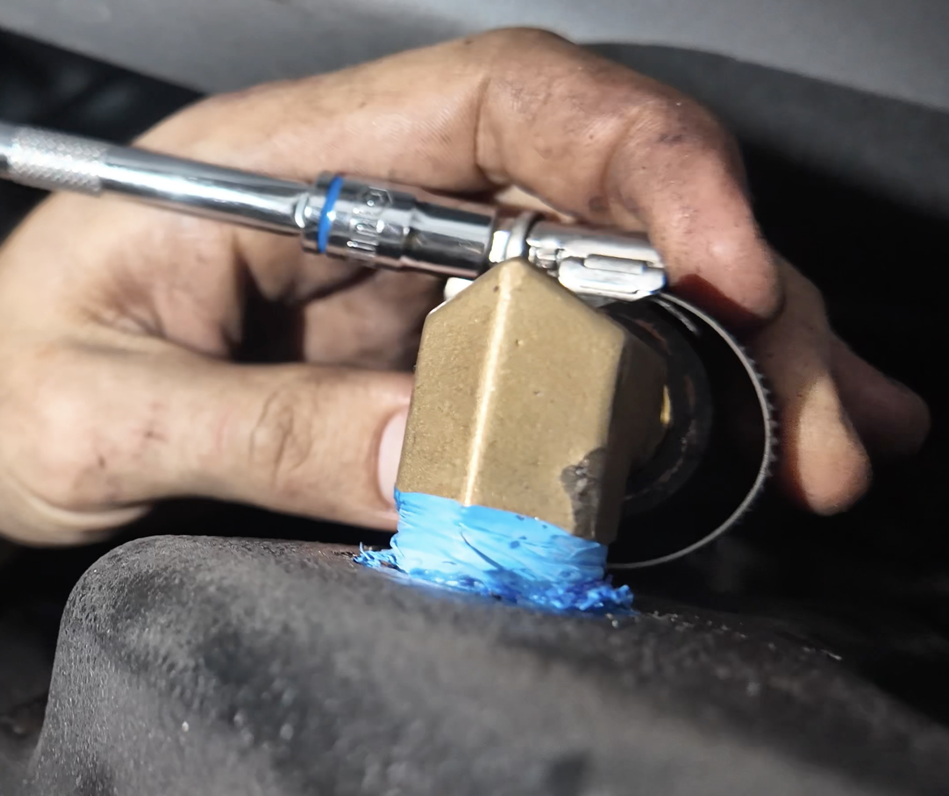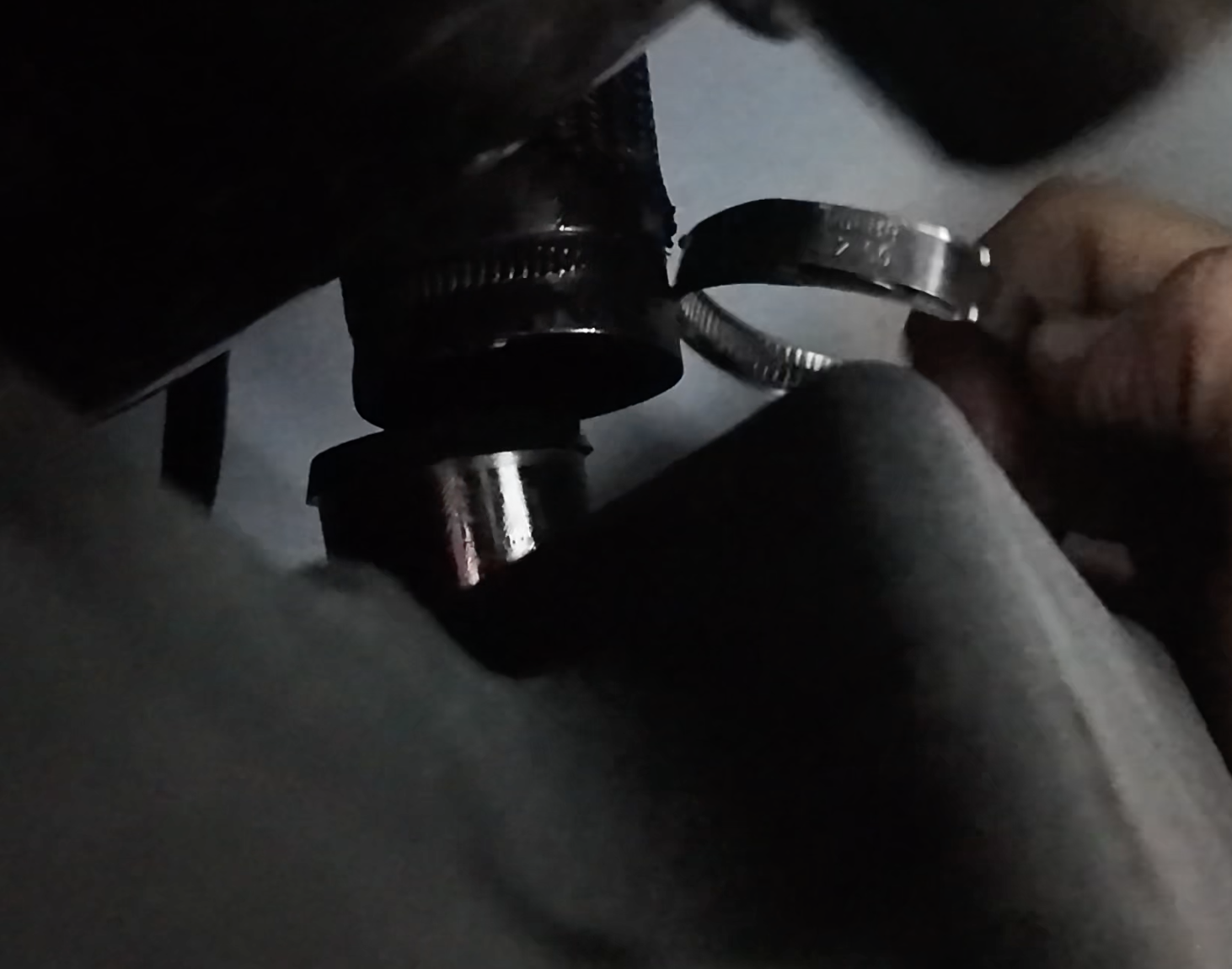 Once that's done, go ahead and attach the hose to the fitting and then tighten the hose clamp using a 7mm socket.