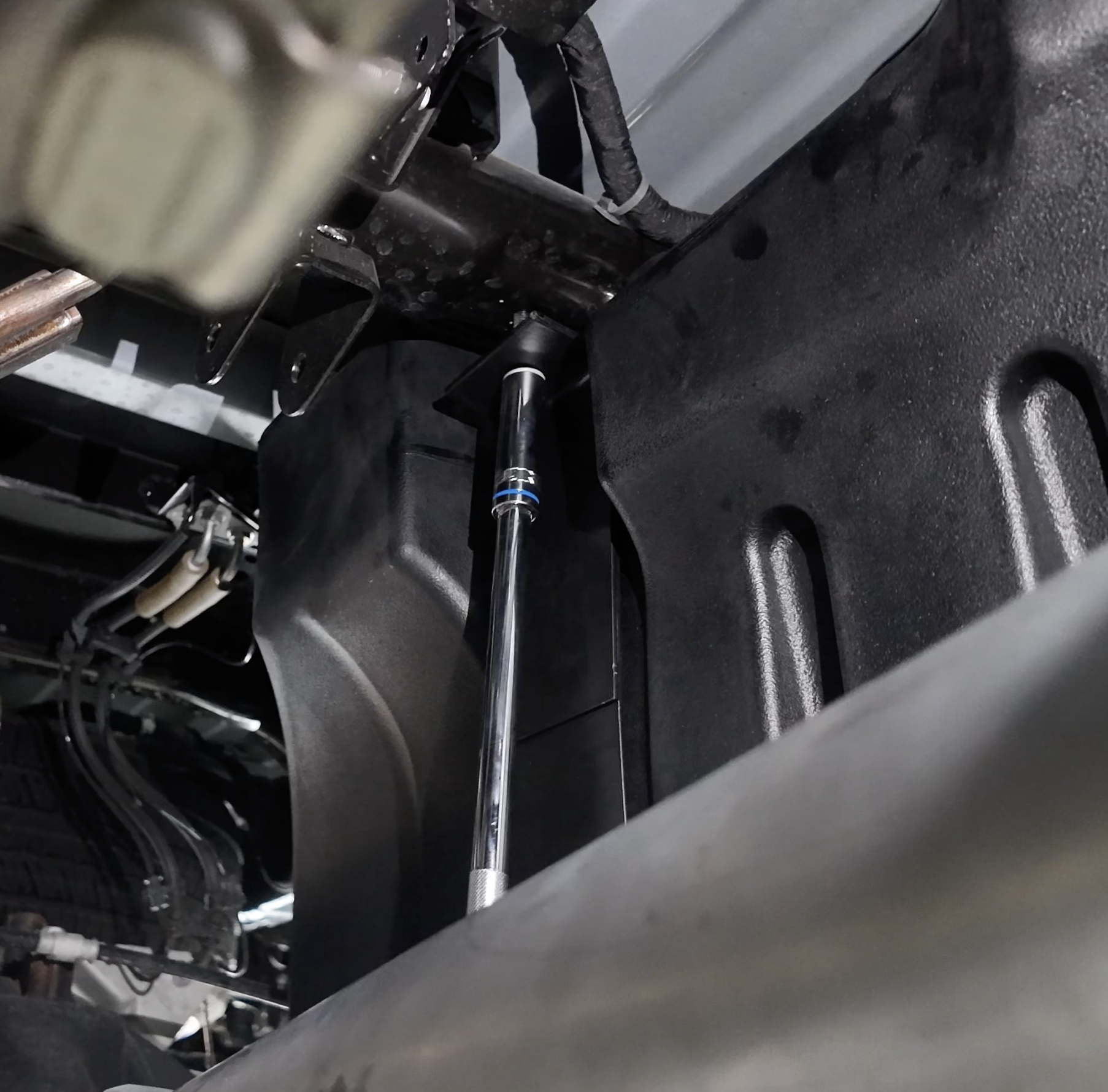 We recommend using a Transmission Jack to do this, but you can also use Ratchet Straps or Floor Jack.