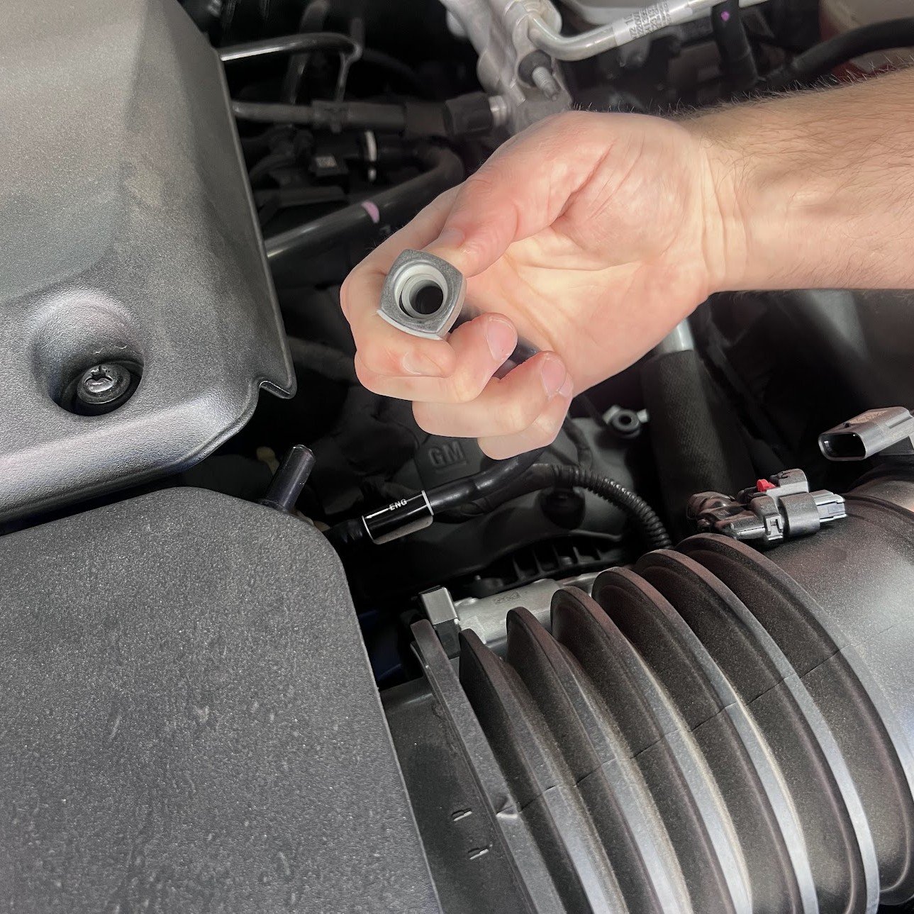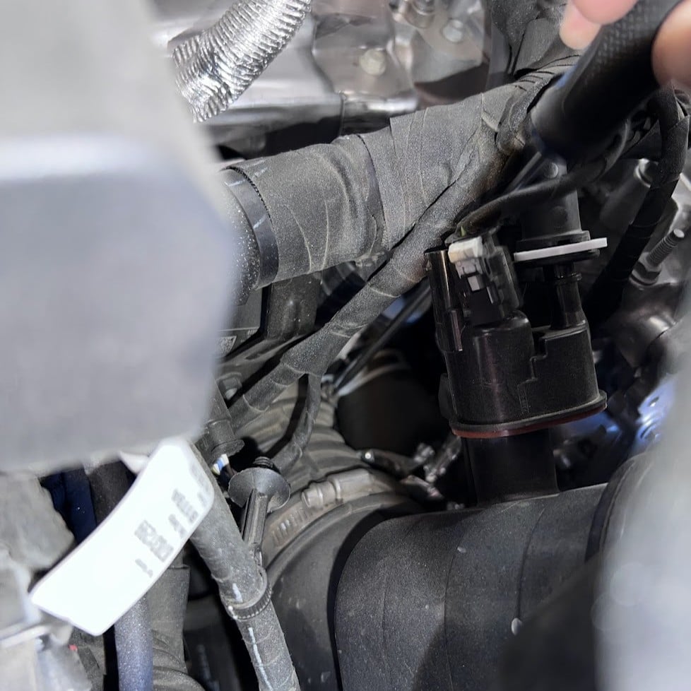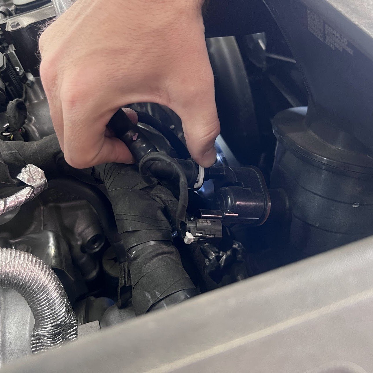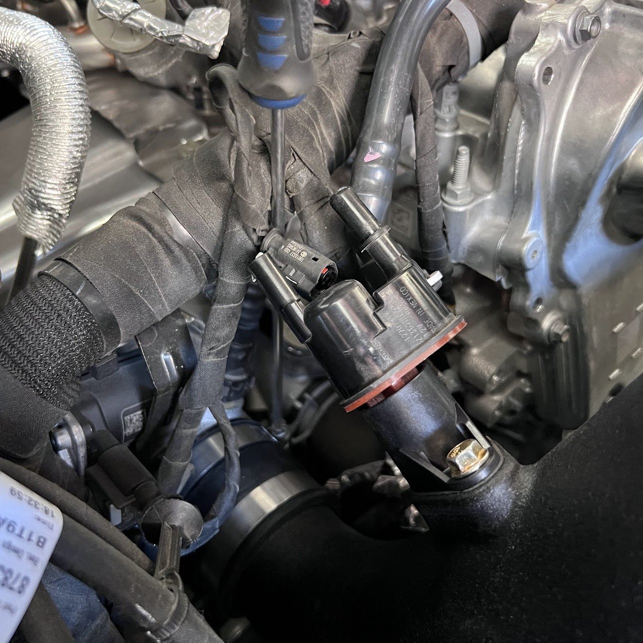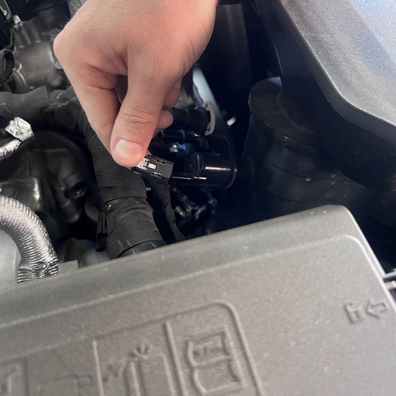 Disconnect the electrical connector on the purge valve that is mounted to the stock intake tube near the throttle body.