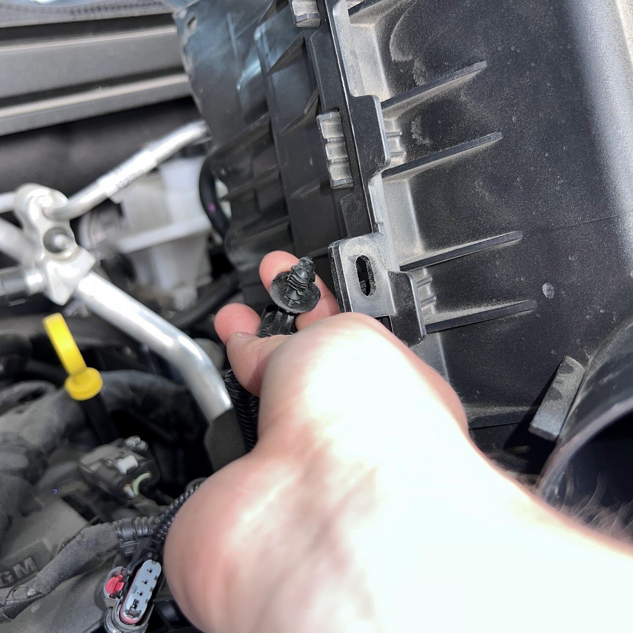 Use a panel popper to disconnect the rivet securing the MAF harness to the OE airbox.
