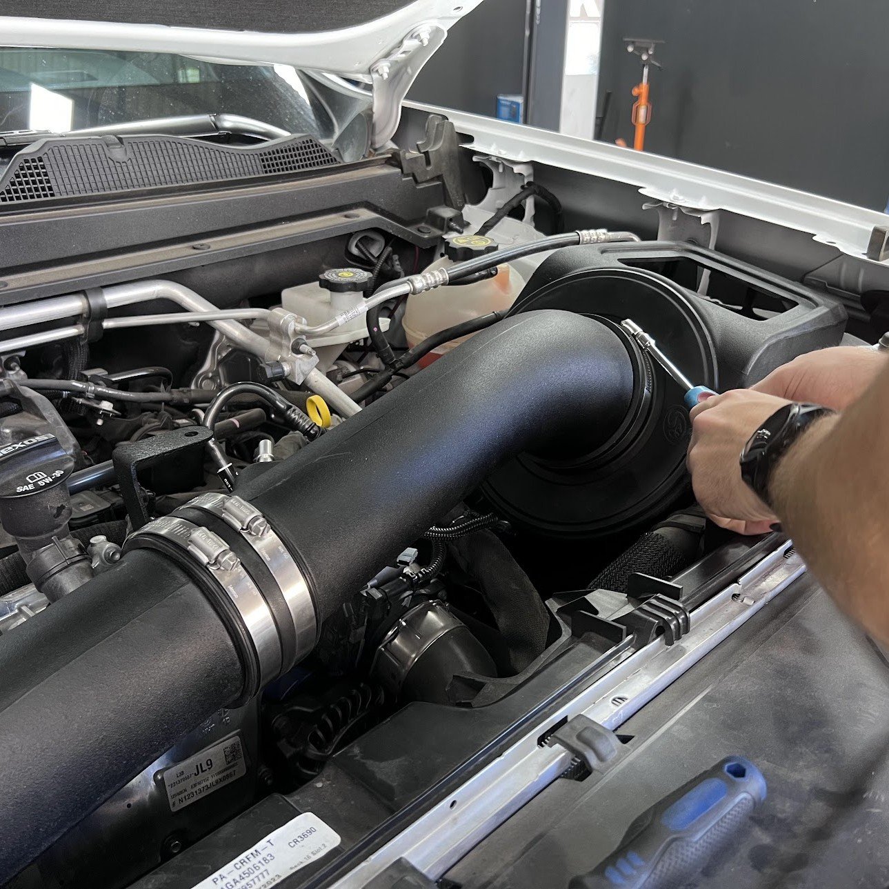 Install the curved intake tube into the vehicle, fitting the coupler over the throttle body.