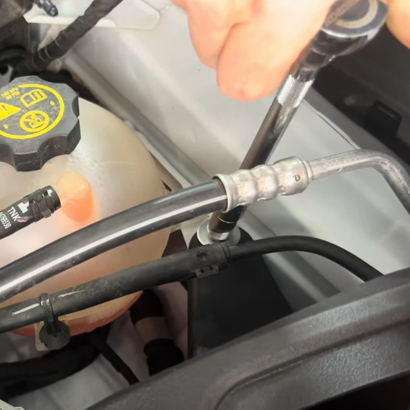 Unfasten the 2 nuts that secure the intake tube to the engine, these will be reused later.