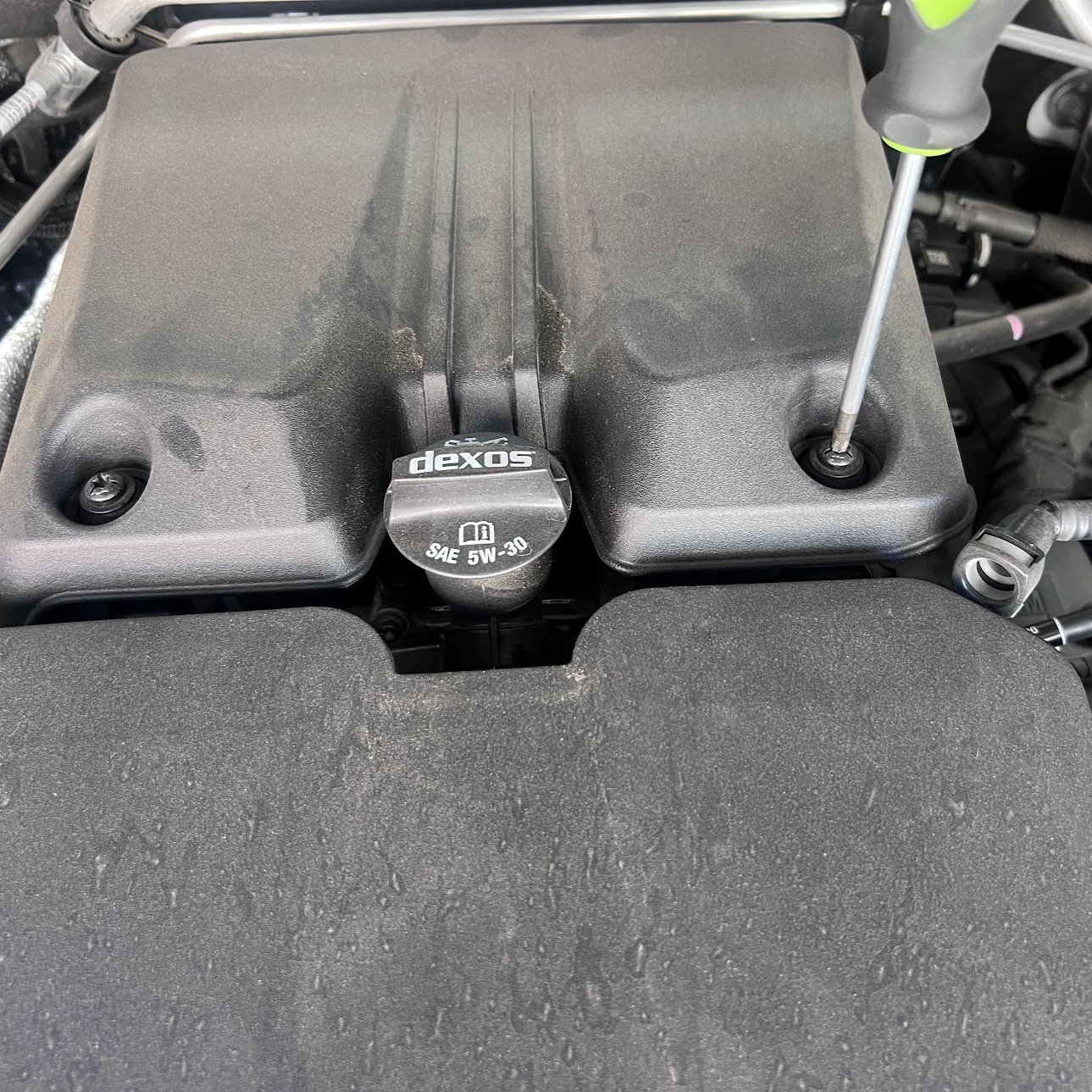Unfasten the screws securing the engine cover to the vehicle. These screws will be reused later.