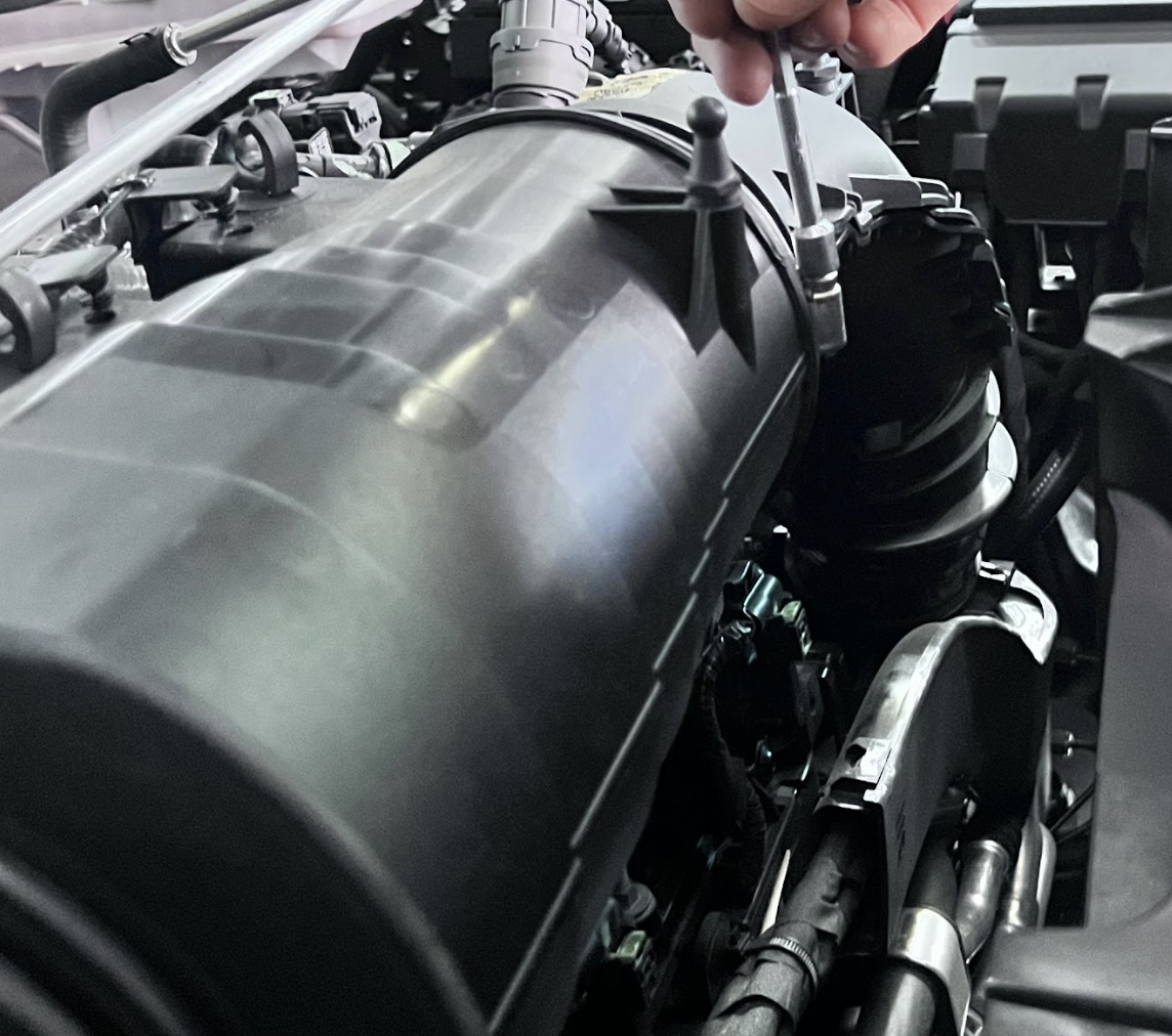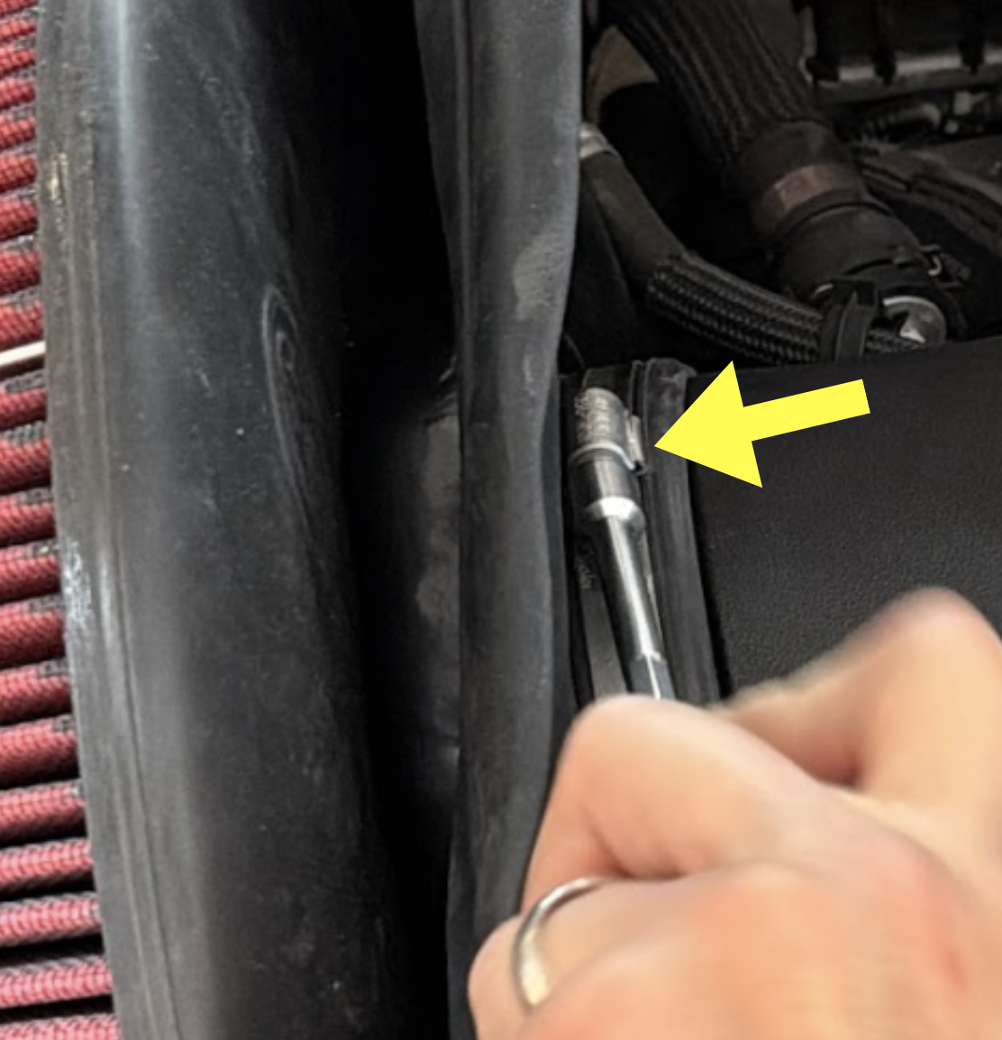 Loosen the 10mm bolt located next to the OEM intake tube. You'll need a 10mm Deep Socket & Long Extension to complete this step.