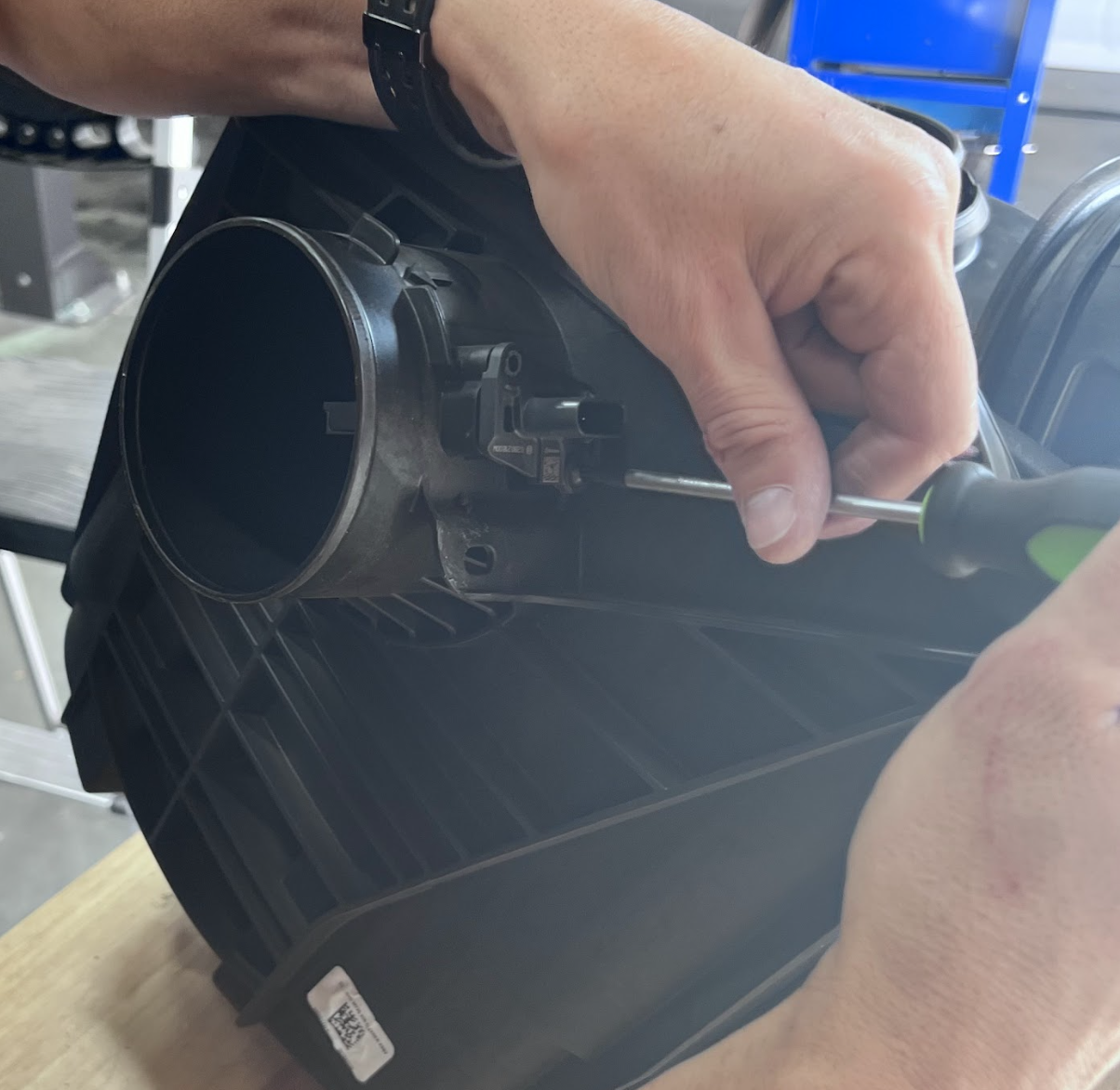 Using a T20 Torx, go ahead and disconnect the MAF Sensor from the factory air box outlet.