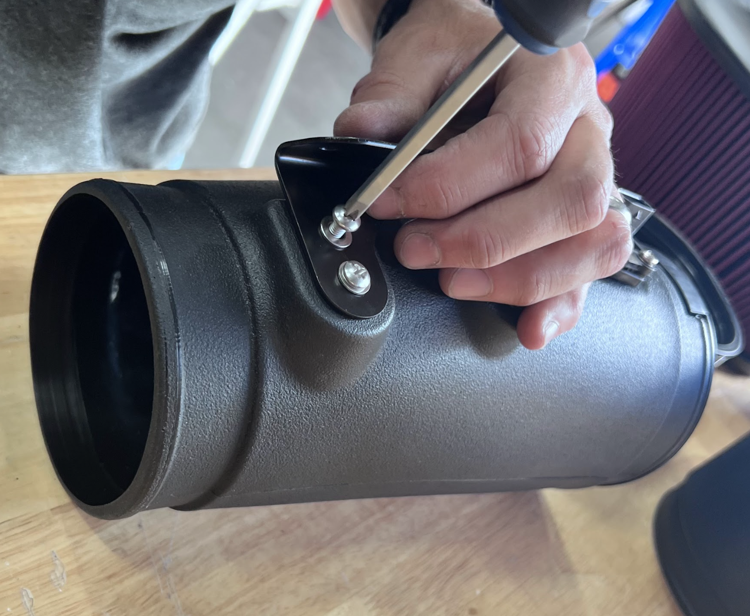 Install the air straightener into the intake tube by lining up the tabs and pipe cutout to line up with the MAF Sensor.