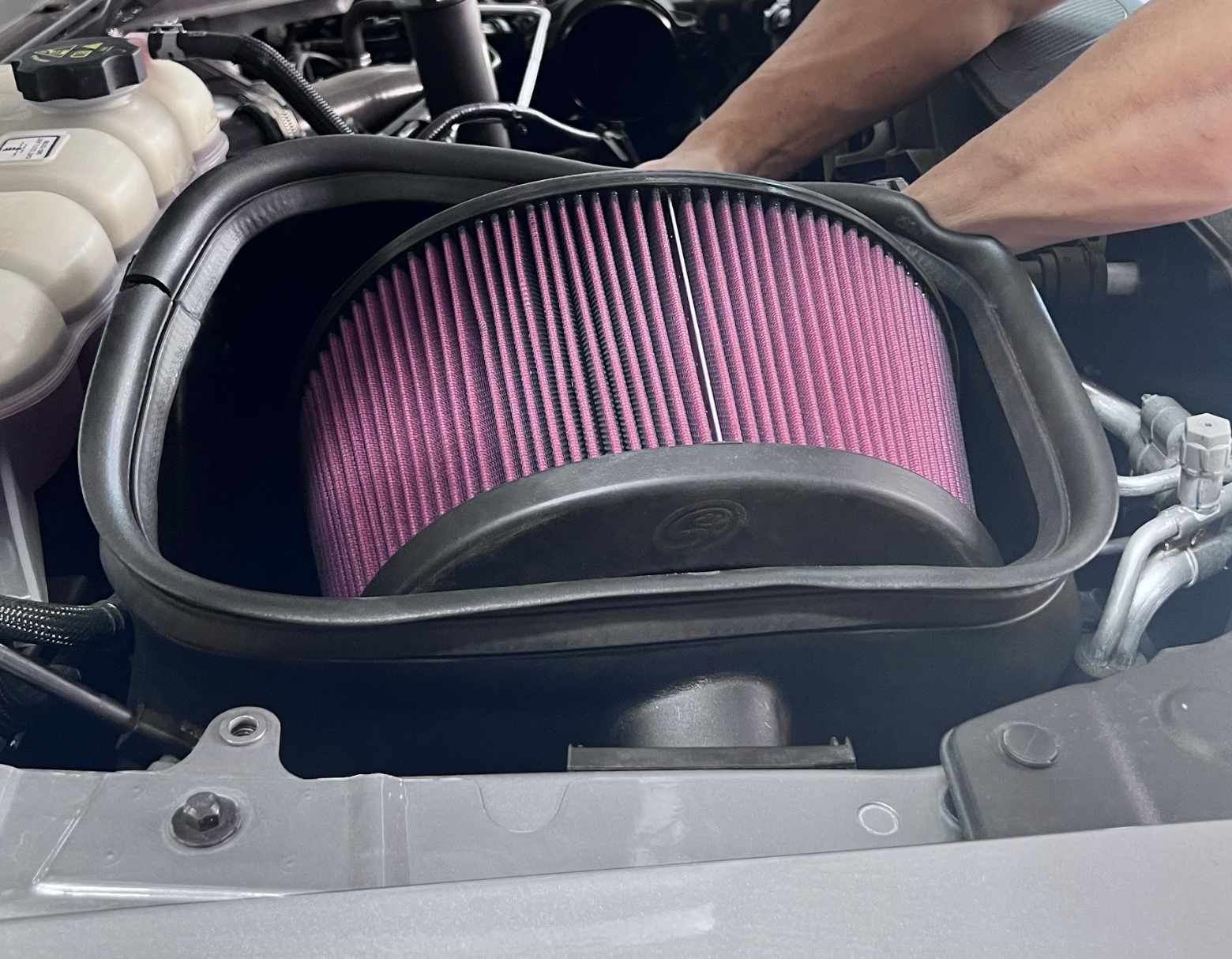 Install the S&B air box into the factory location, utilizing the (4) posts.