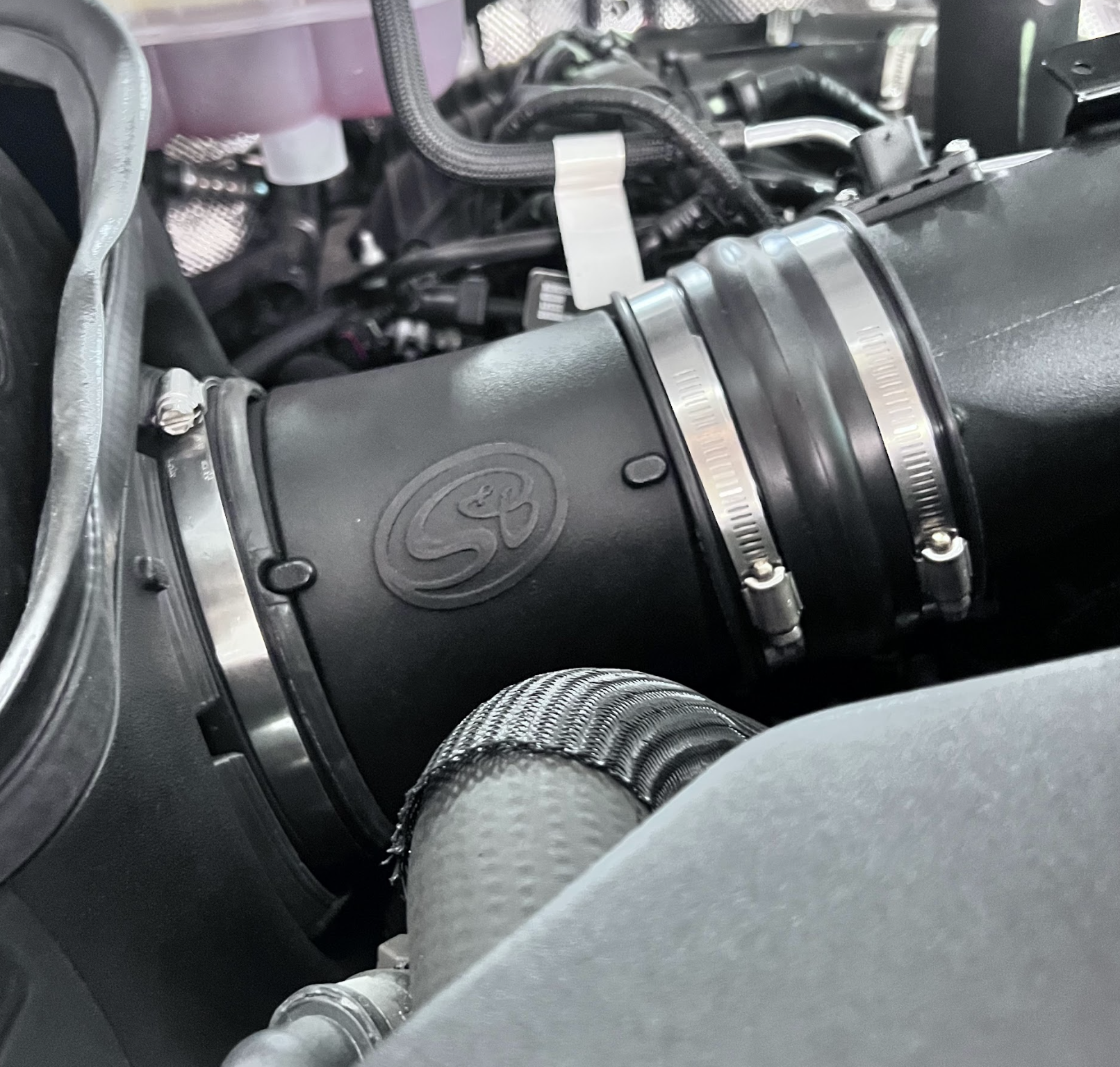 Now, go ahead and install the coupler onto the S&B intake tube assembly and line up the indicators on the intake tube.