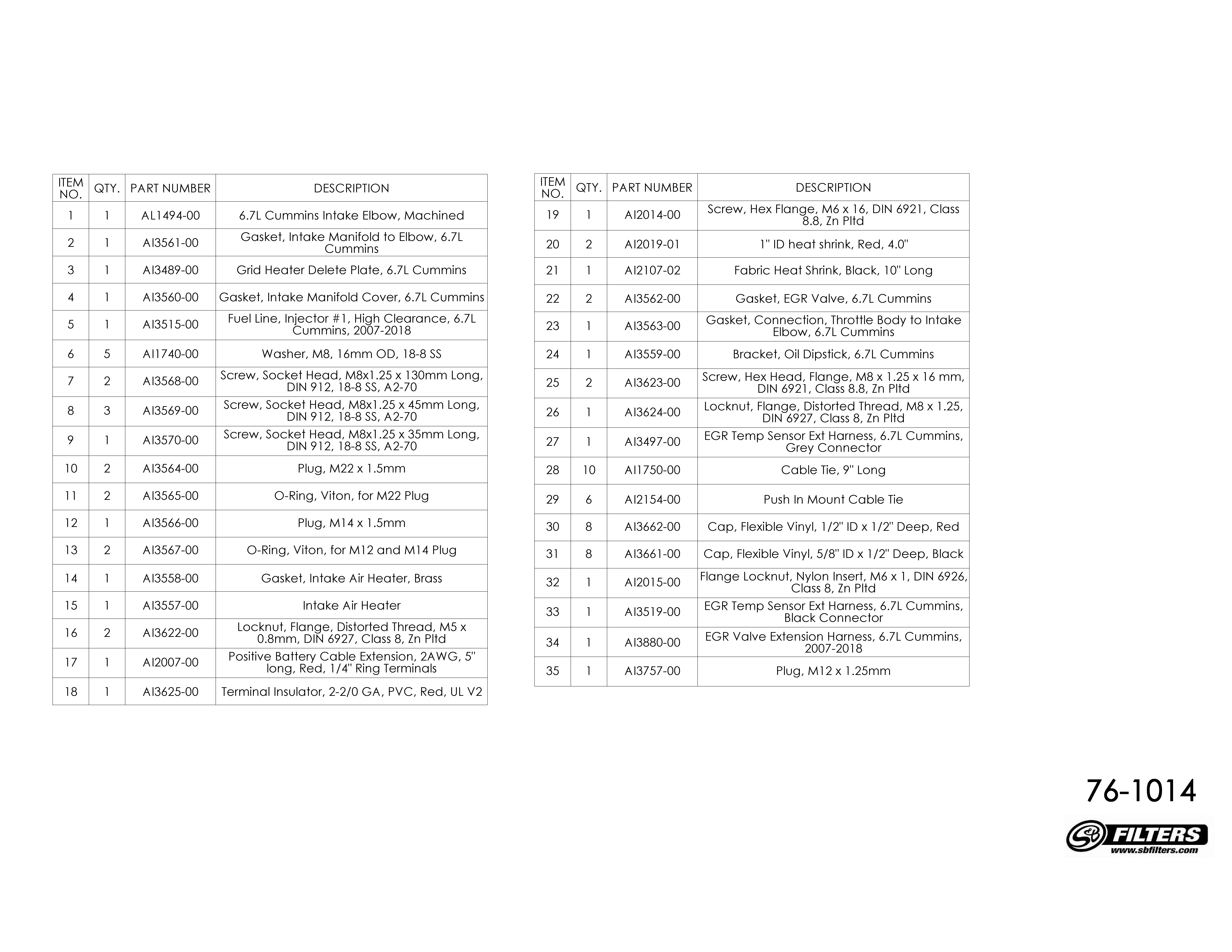 Vehicle Fitment 2007.5-2018 6.7L Cummins Diesel, Ram, 2500/3500