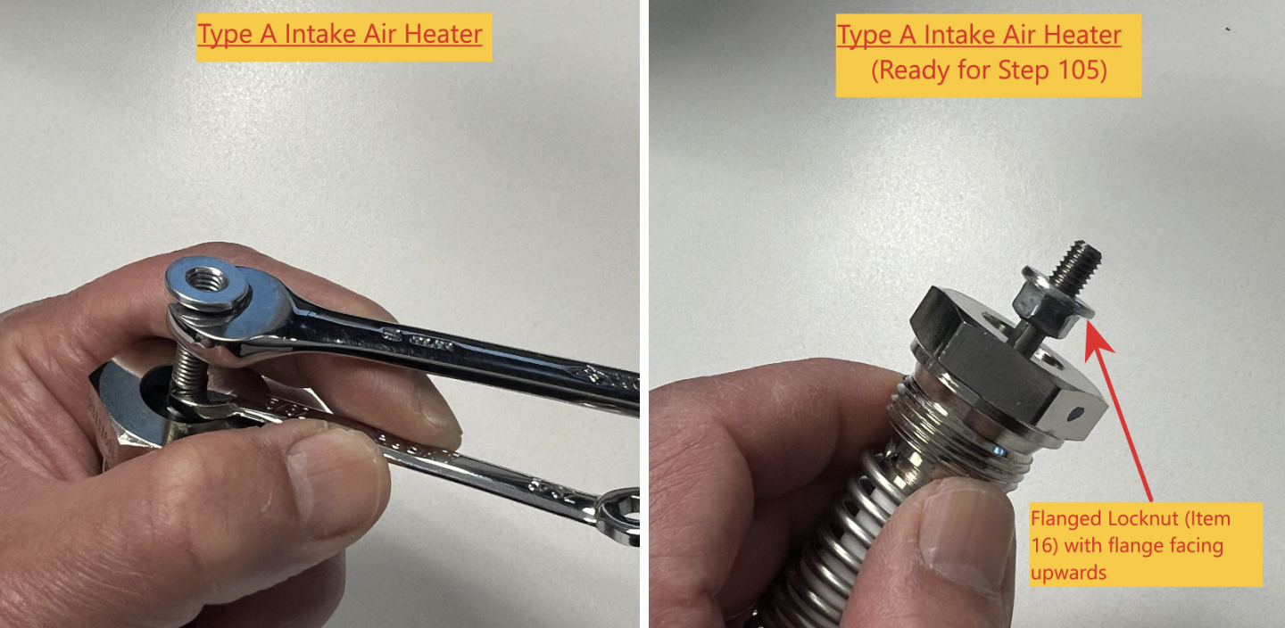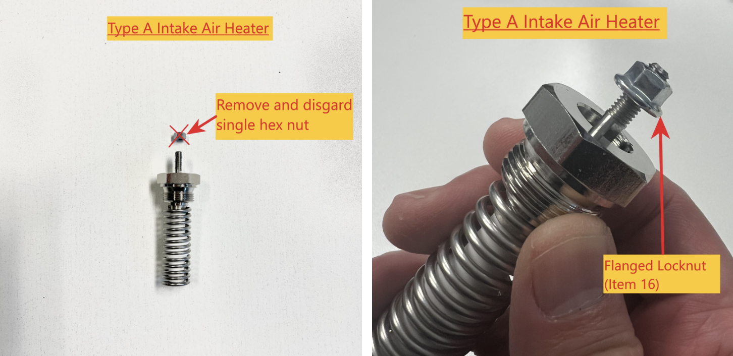 - Intake Air Heater electrical connection nuts (Item 16) making sure they are secure and tight.