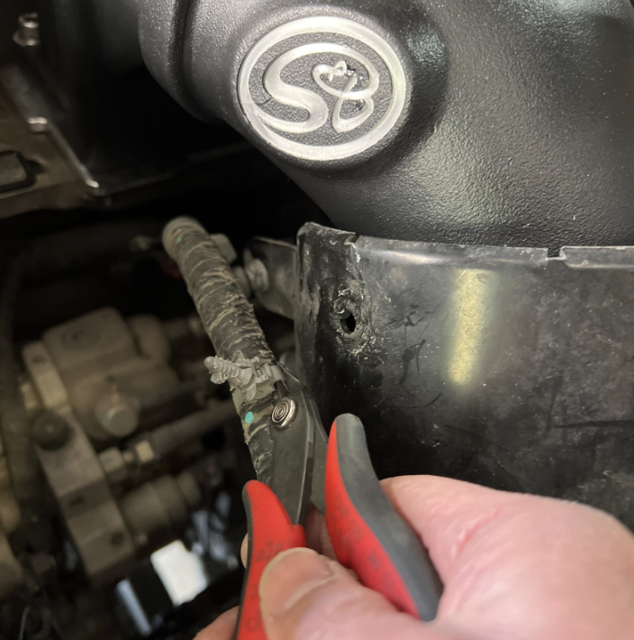 Using a Flush Cutter, cut and remove the second retaining clip on the EGR valve and temperature sensor harness. Be careful not to damage the wire harness.