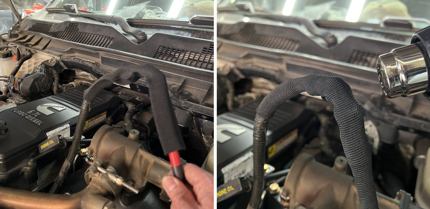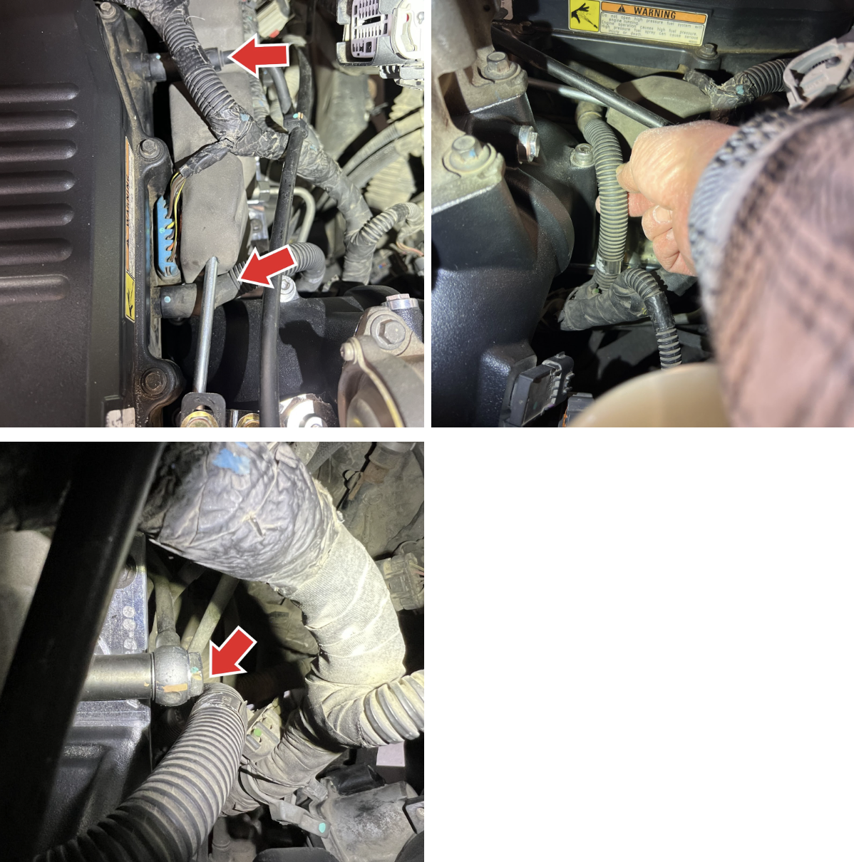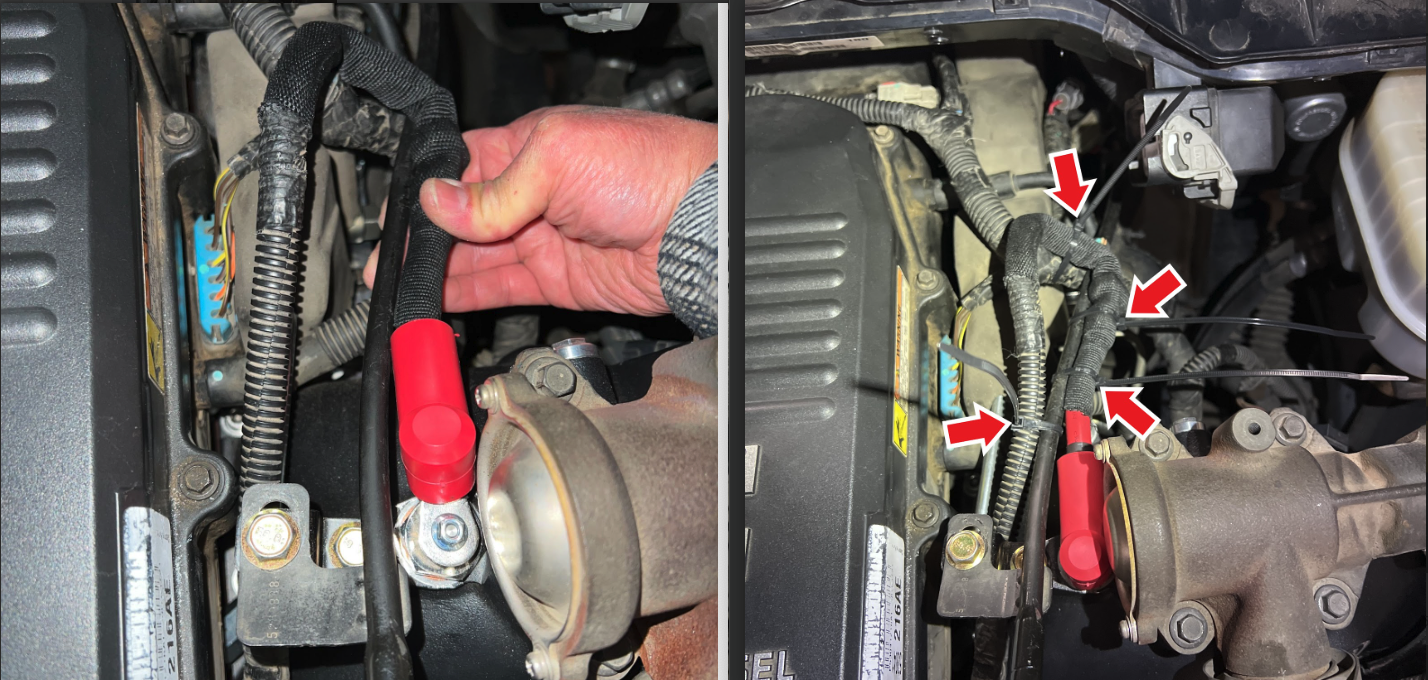 Follow the grid heater cable around the cylinder head making sure it is not rubbing against the Intake Elbow or any hot or moving engine components.