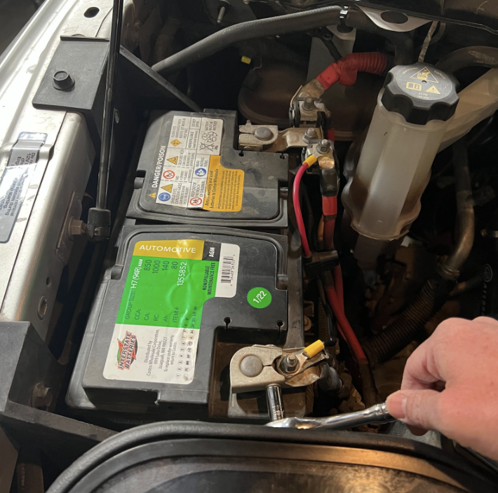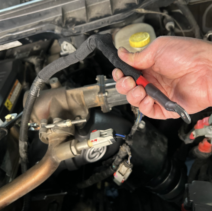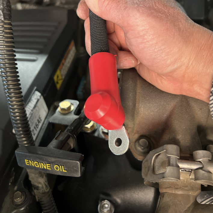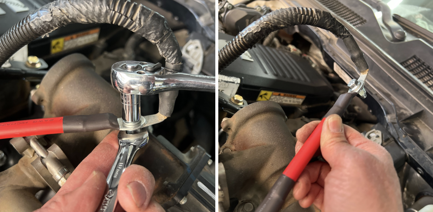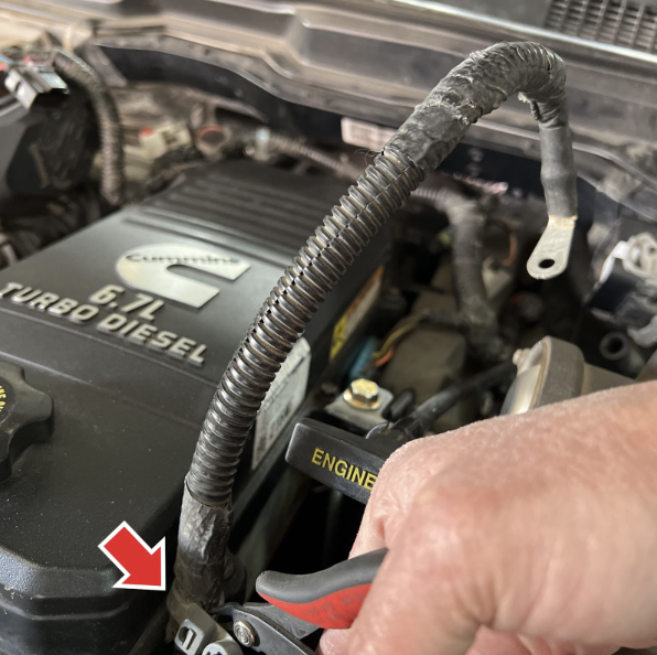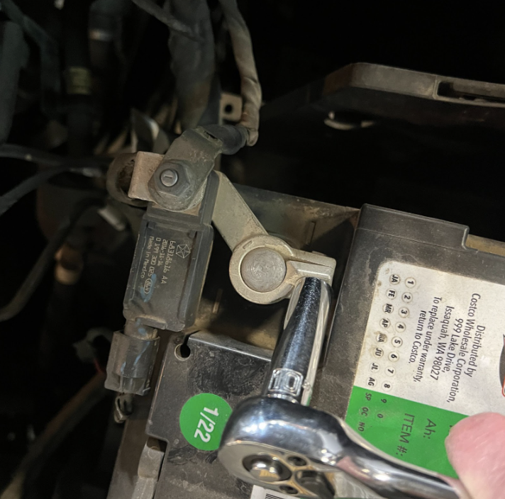Re-connect the negative battery cable on the driver side battery. Tighten the battery terminal nut.