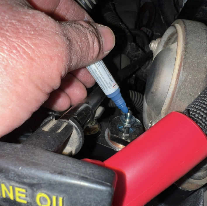 Apply some blue thread locker to the top end of the threaded stud on the Intake Air Heater (Item 15).