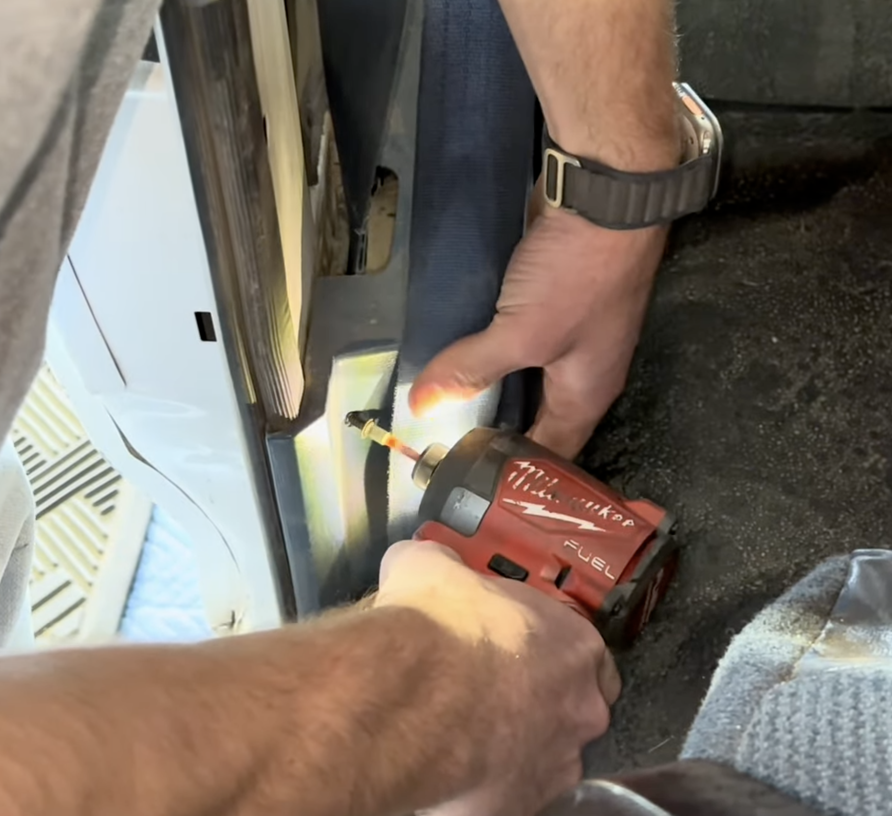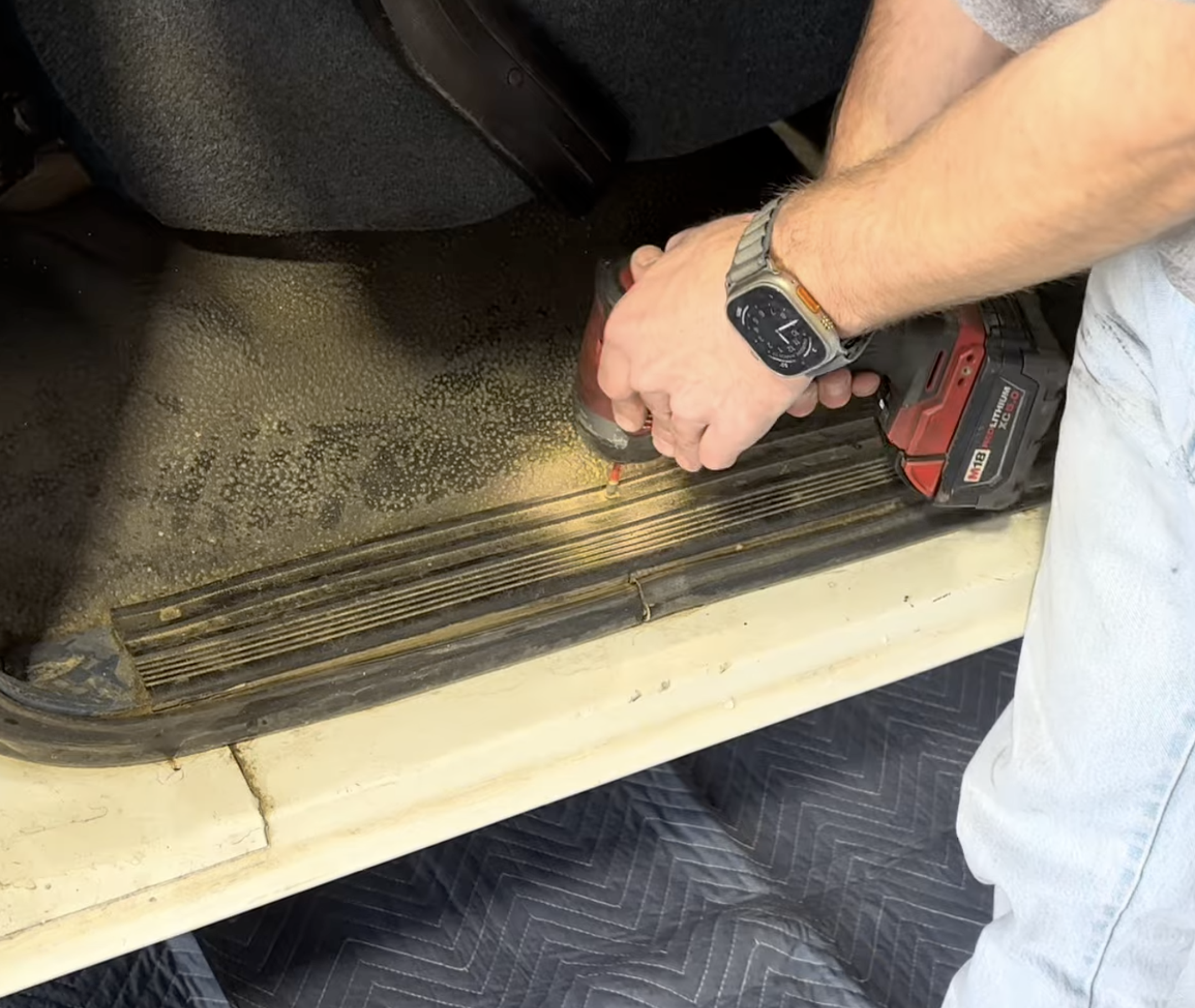 Remove the door floor trim molding from both the driver and passenger side using a phillips head.