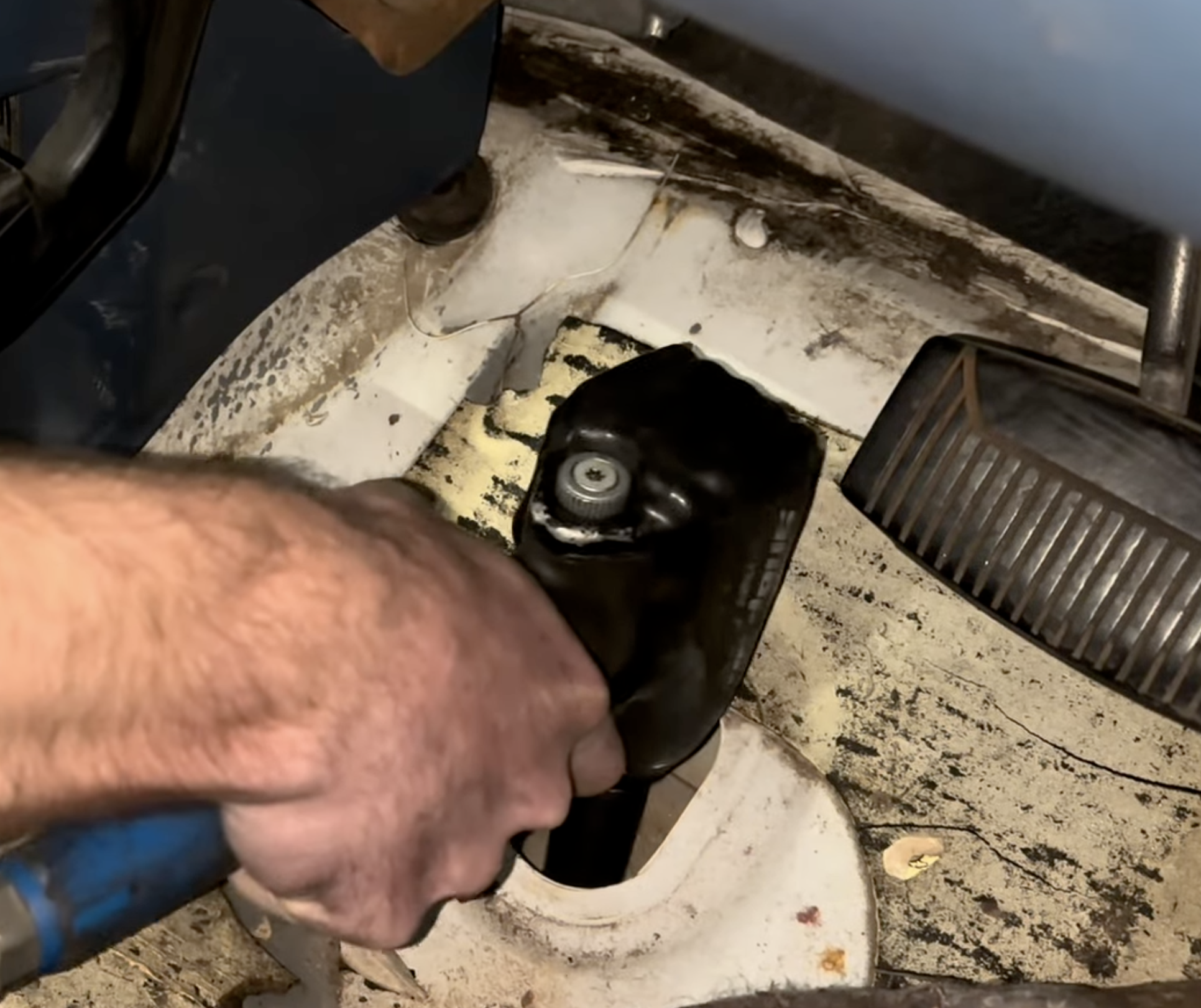 Using a 5/8th socket, go ahead and remove both body mount bolts.