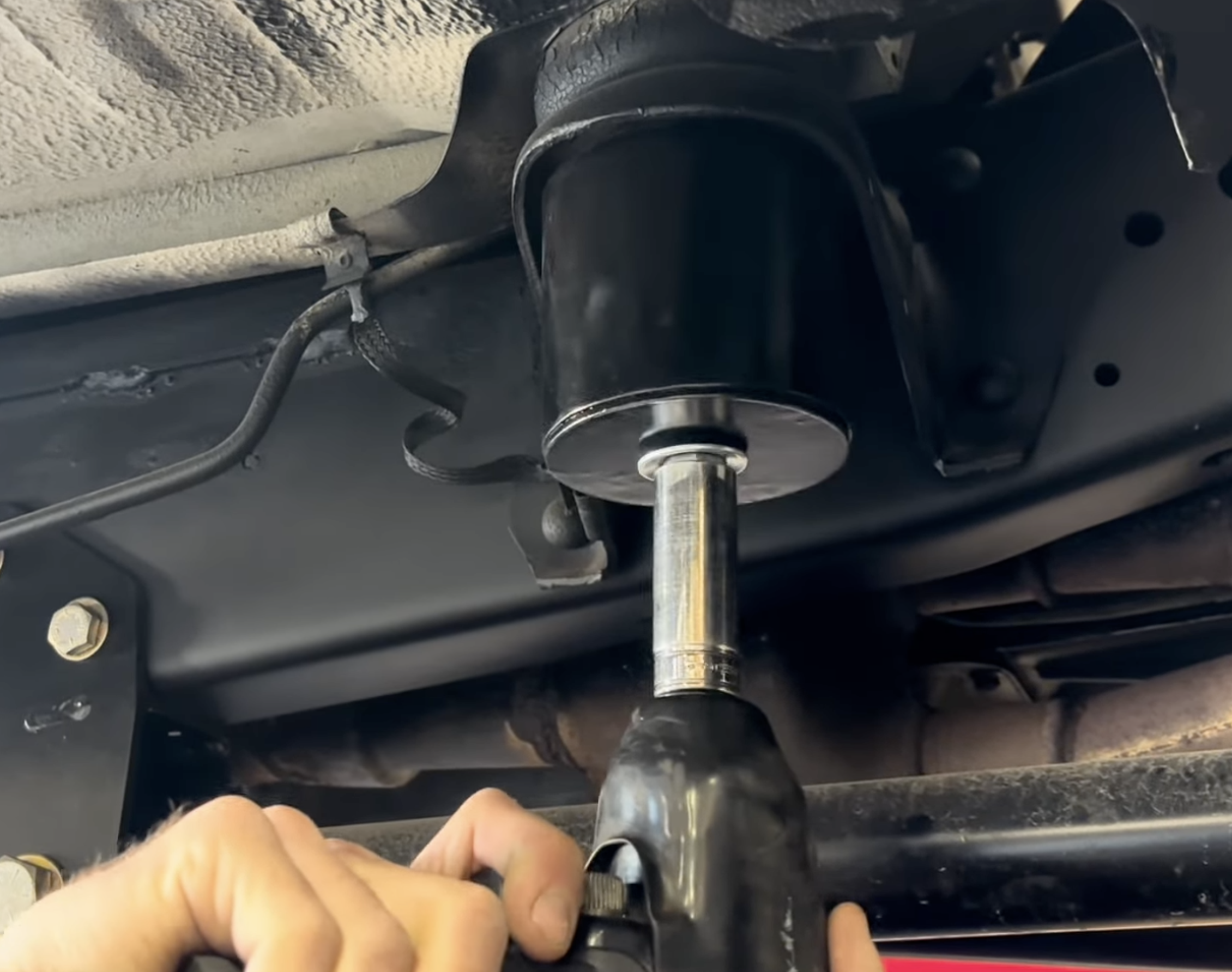 Using a 5/8th socket and extension, go ahead and uninstall the factory 2nd row body mounts.