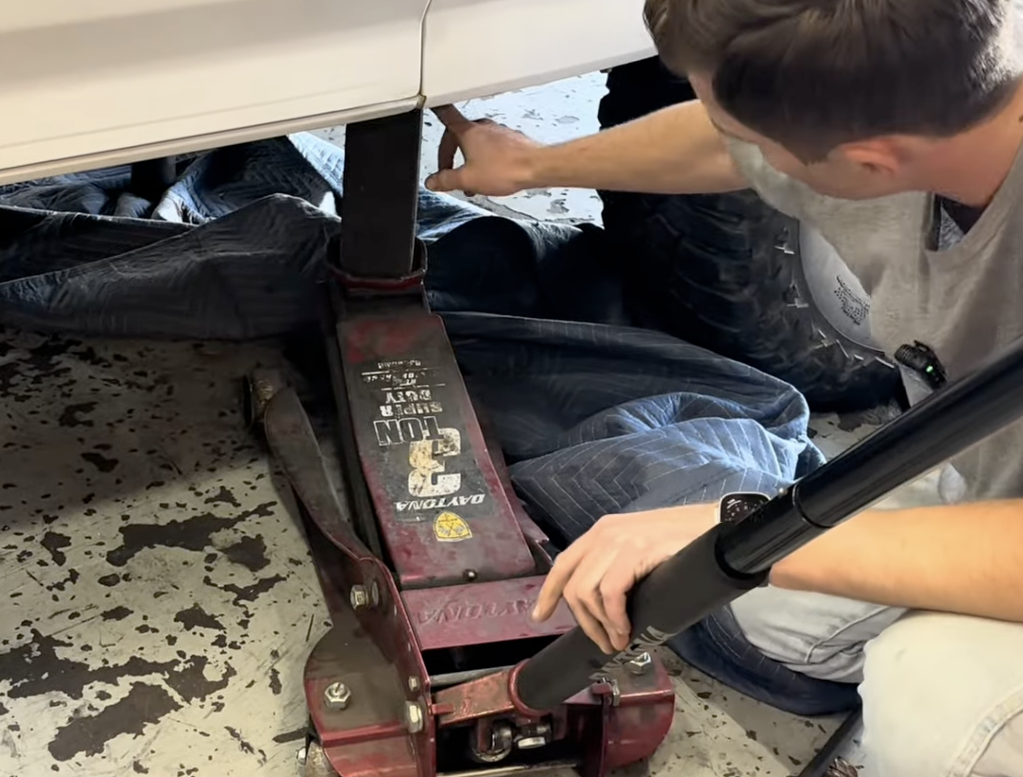 Next, proceed to the passenger side and start by jacking up the body similar to what you did on the drivers side.
