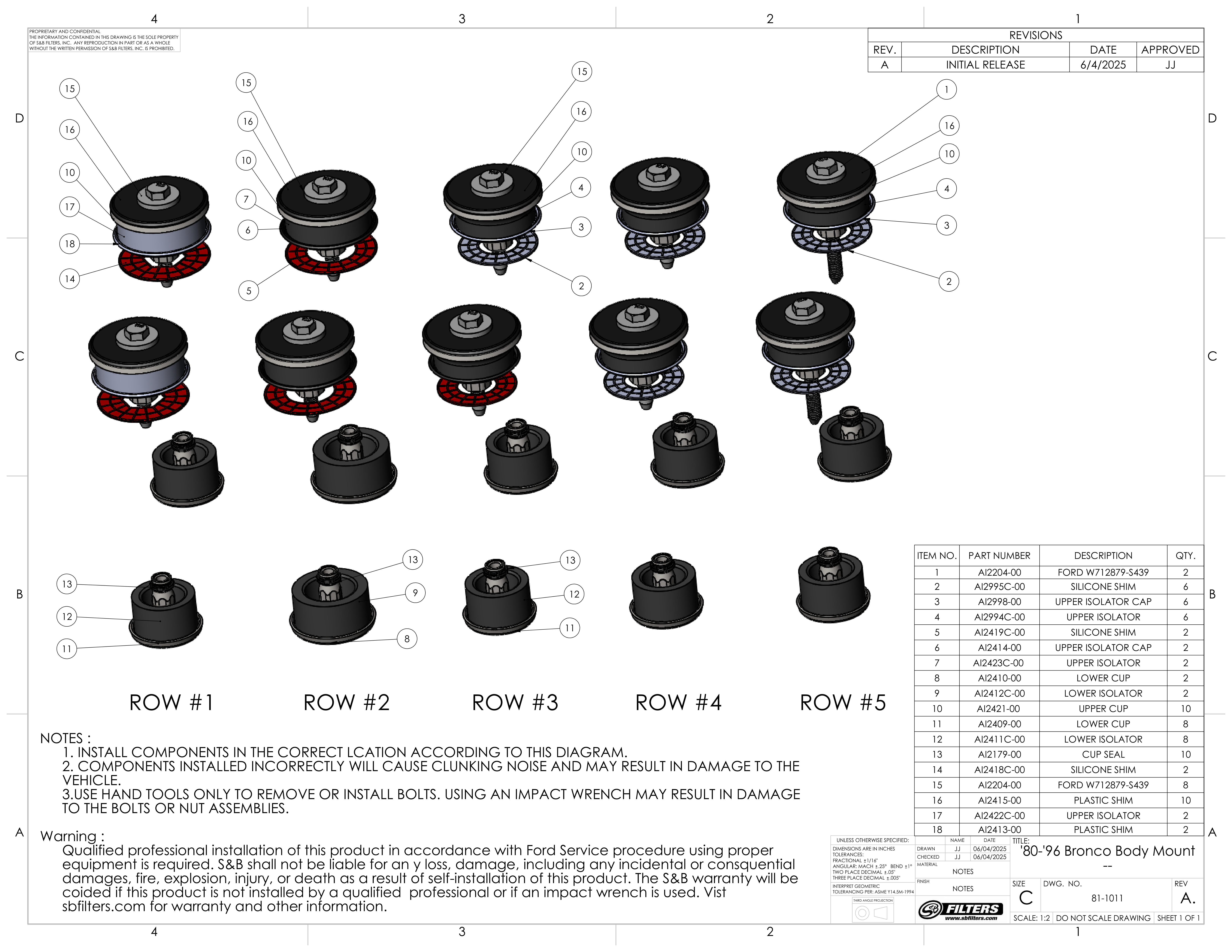 *Each body mount includes a red paper separator: the components above the paper are the upper mounts, and the components below the paper are the lower mounts.