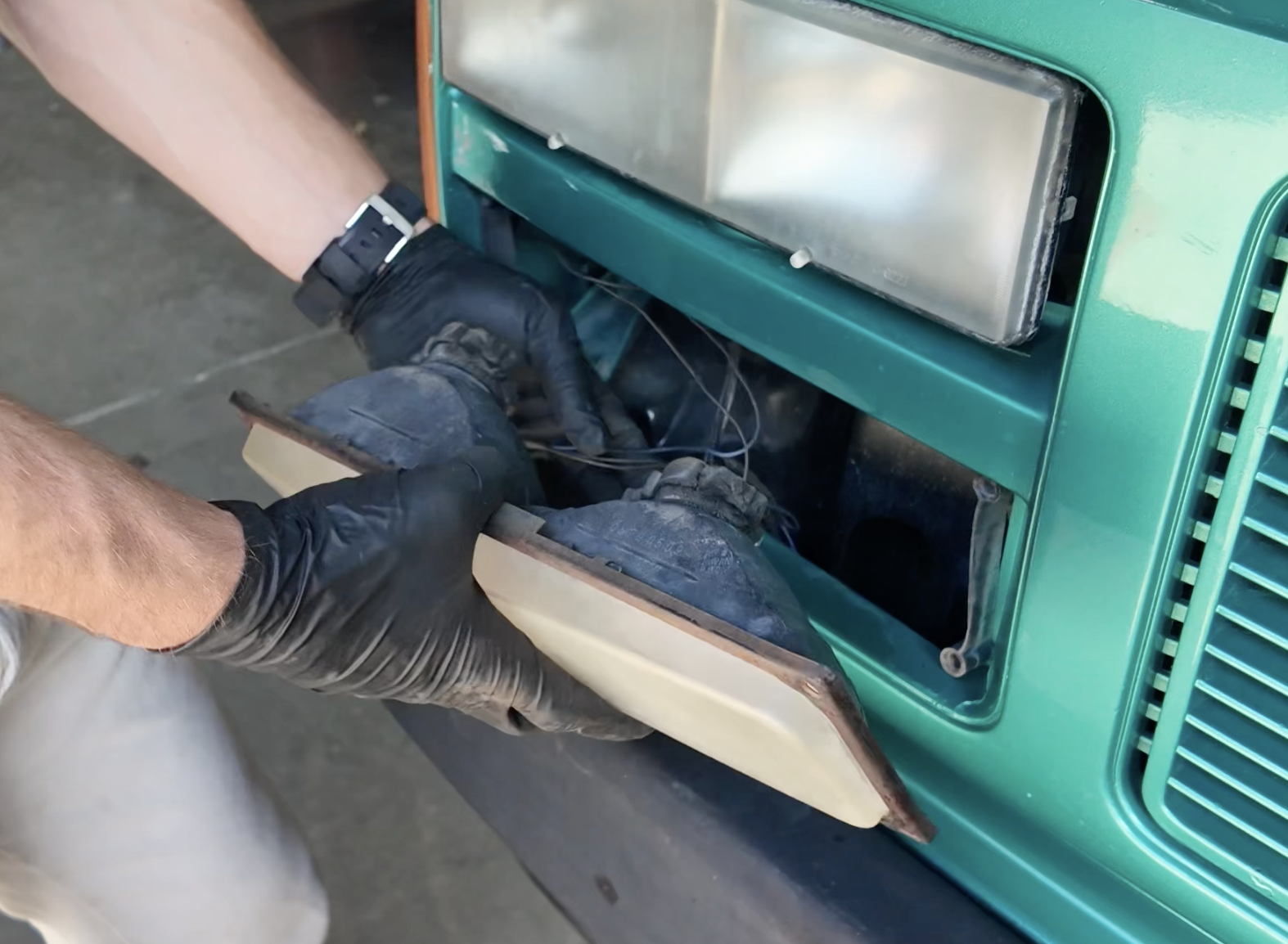 Unbolt and remove both of the lower headlight assemblies and remove the bulbs from the housing.